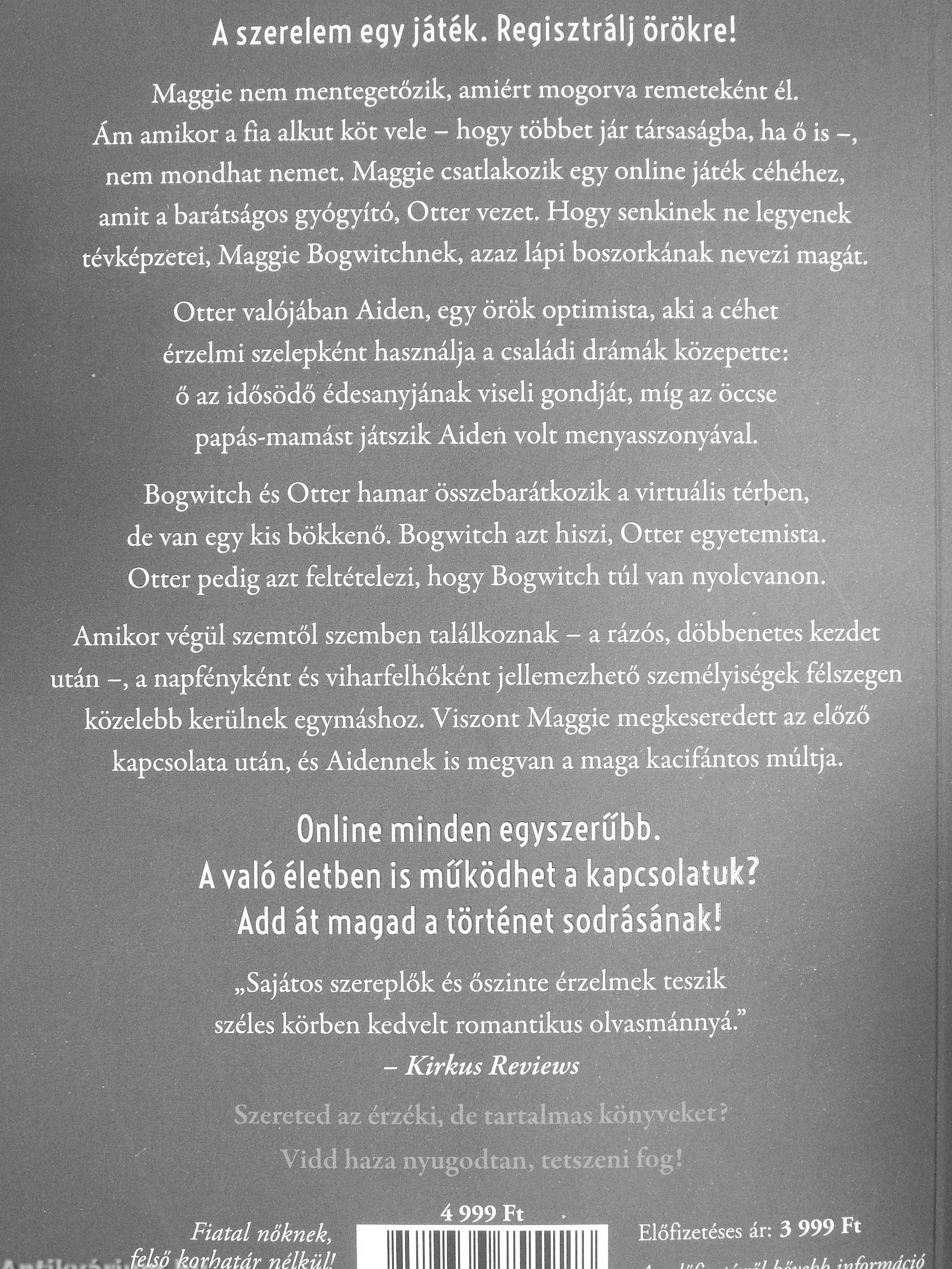 Maggie nem mentegetőzik, amiért mogorva remeteként él. Ám amikor a fia alkut köt vele - hogy többet jár társaságba, ha ő is -, nem mondhat nemet. Maggie csatlakozik egy online játék céhéhez, amit á barátságos gyógyító, Otter vezet. Hogy senkinek ne legyenek tévképzetei, Maggie Bogwitchnek, azaz lápi boszorkának nevezi magát.