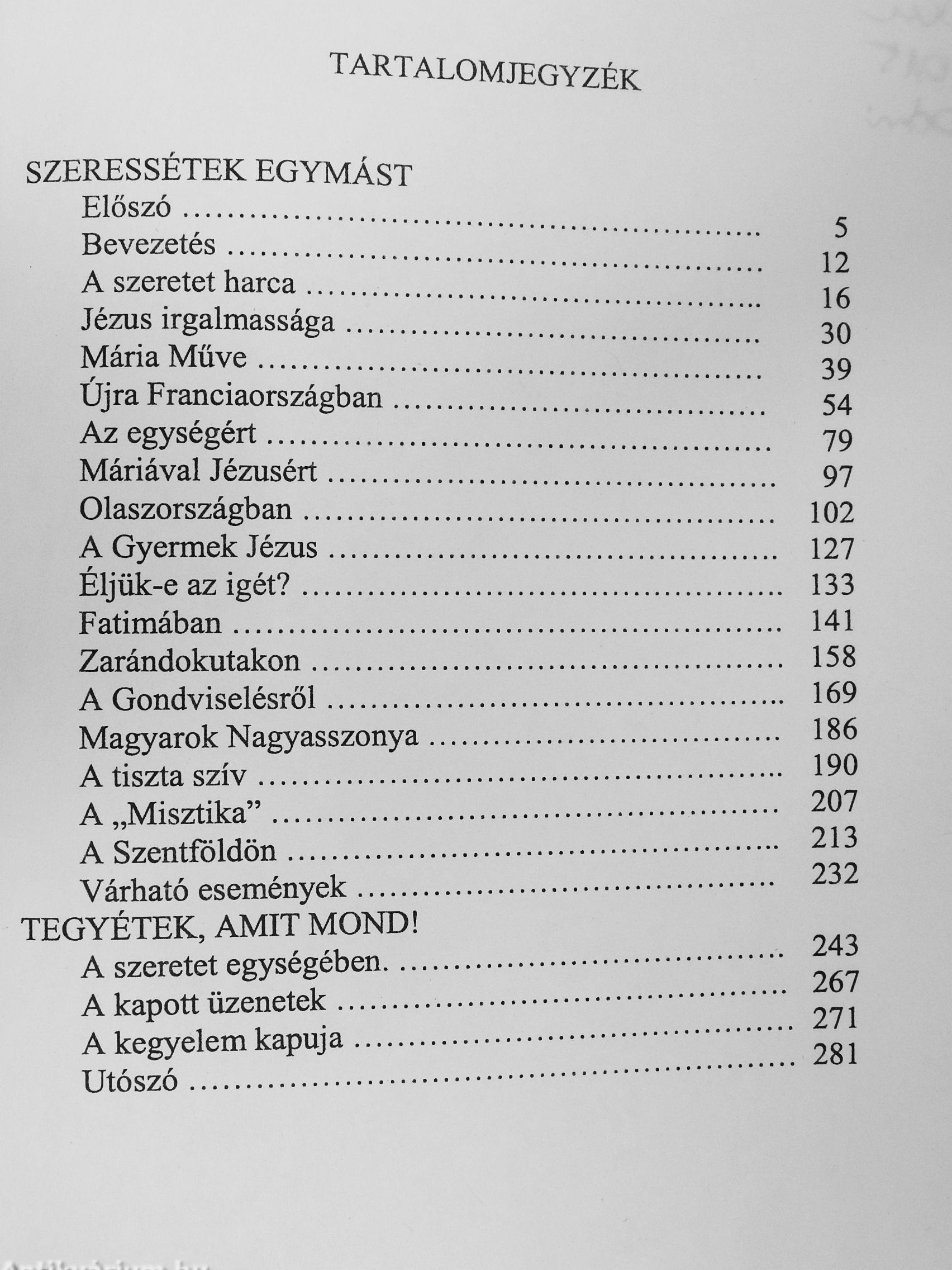 „Édes gyermekeim, meg akarjátok-e menteni ezt a Földet, ahol éltek, ezt az emberiséget, Isten valamennyi gyermekét? Akarjátok-e a békét és az egységet? Ha igennel válaszoltok Nekem, tegyétek meg, amire olyan régóta, könyörögve kérlek titeket! Szeressétek egymást Gyermekeim! Ha valóban testvérek lesztek, és megfogjátok egymás kezét, Én veletek leszek, és megígérem nektek, hogy megm.entelek titeket!"