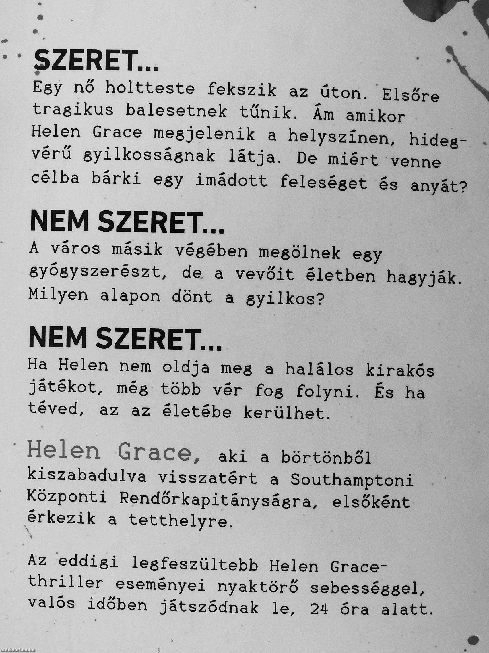 Az eddigi legfeszültebb Helen Grace-thriller eseményei nyaktörő sebességgel, valós időben játszódnak le, 24 óra alatt.
