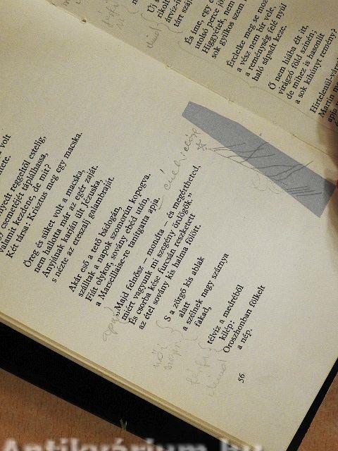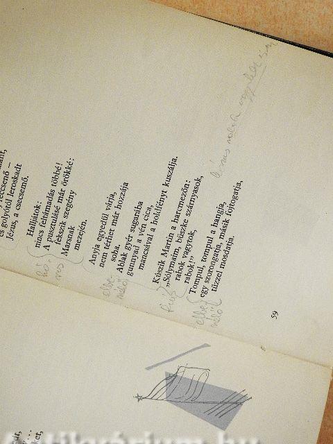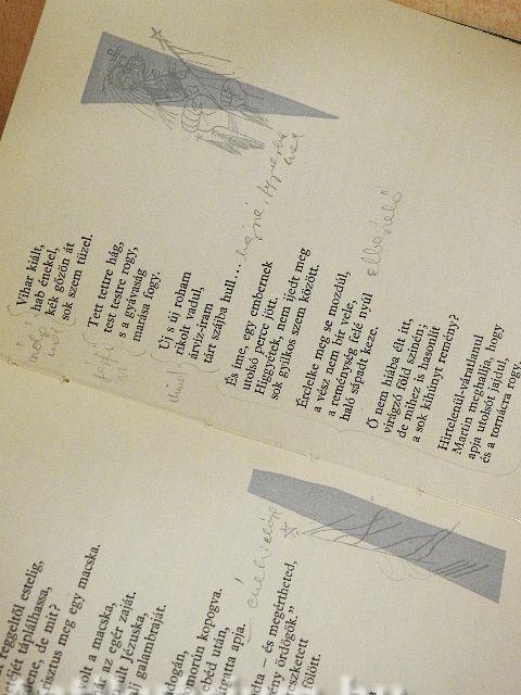 A védőborító szakadozott. Több lapon ceruzás bejegyzés, jelölés, aláhúzás látható.