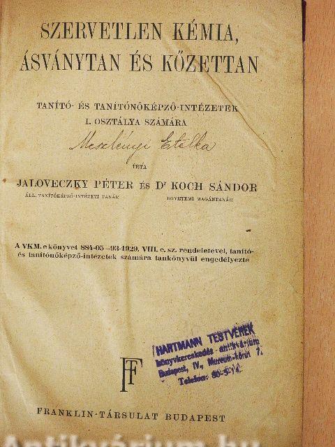 | Megjegyzés: | Írta Jaloveczky Péter áll. tanítóképző-intézeti tanár és Dr. Koch Sándor egyetemi magántanár. Nyomtatta a Franklin-Társulat nyomdája. Fekete-fehér ábrákkal. |
