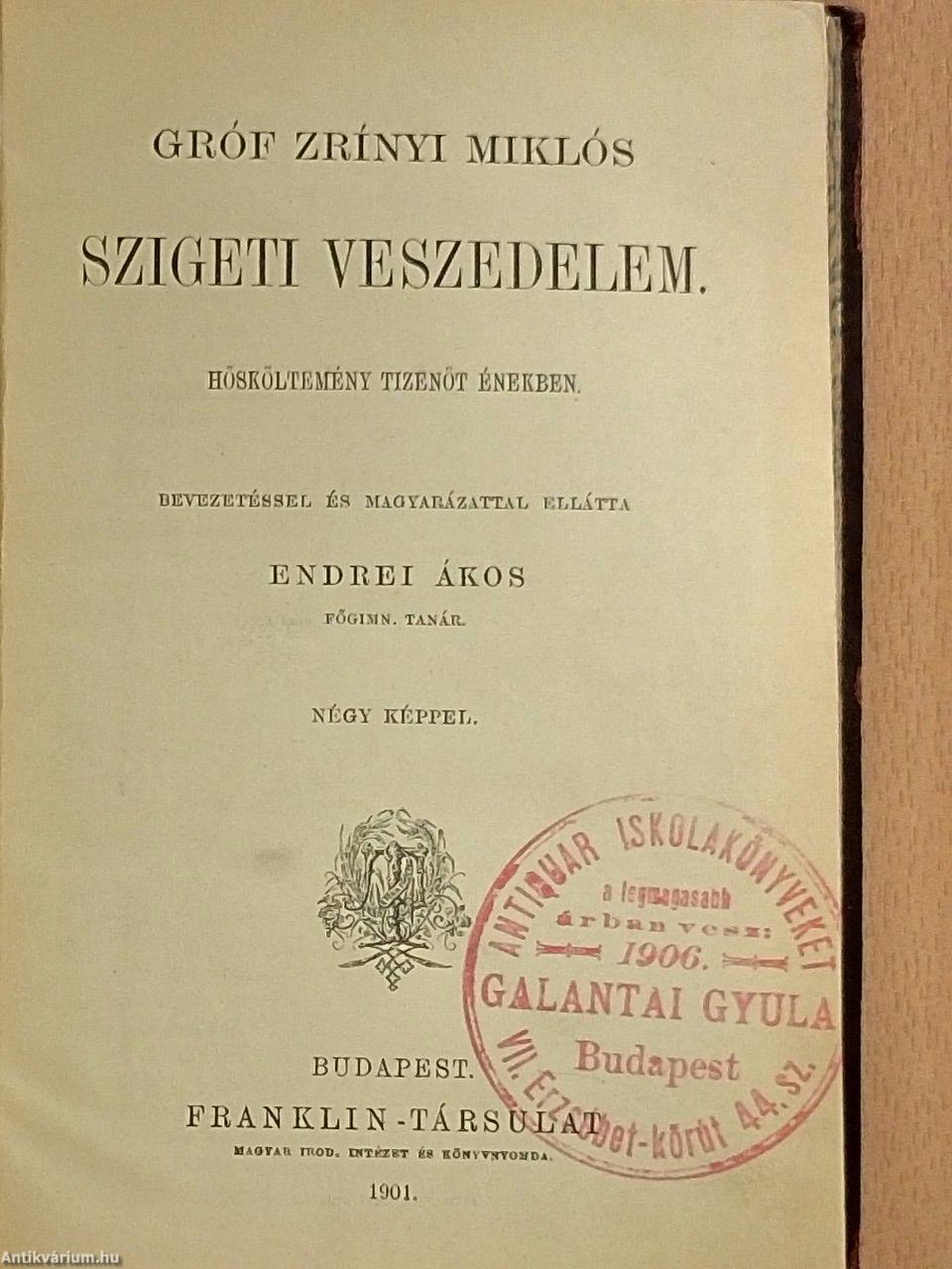 | Megjegyzés: | Négy fekete-fehér képpel illusztrálva. Bevezetéssel és magyarázattal ellátta Endrei Ákos főgimn. tanár. Nyomtatta a Franklin-Társulat nyomdája. |