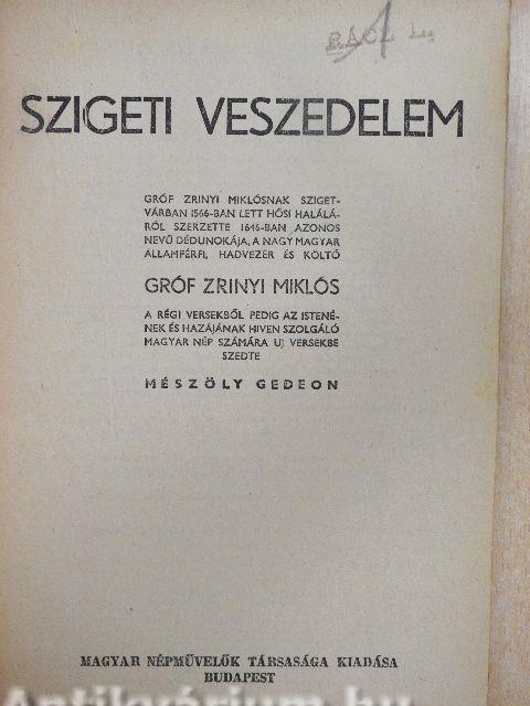 | Megjegyzés: | Gróf Zrinyi Miklósnak Szigetvárban 1566-ban lett hősi haláláról szerzette 1646-ban azonos nevű dédunokája, a nagy magyar államférfi, hadvezér és költő Gróf Zrinyi Miklós. A régi versekből pedig az istenének és hazájának híven szolgáló magyar nép számára uj versekbe szedte Mészöly Gedeon. A szerző arcképével illusztrálva. Tolnai Nyomdai Műintézet és Kiadóvállalat Rt. nyomása. |