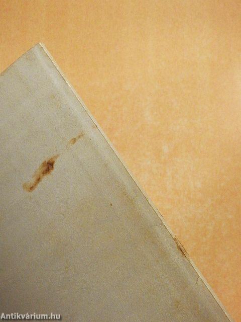 A borító és néhány lap foltos. A borító kopott, elszíneződött, élei sérültek. A gerinc sérült.