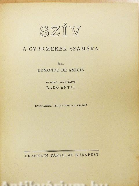 | Megjegyzés: | Nyolcadik, teljes magyar kiadás. Olaszból fordította Radó Antal. Fekete-fehér szövegközti illusztrációkkal. Nyomtatta a Franklin-Társulat nyomdája, Budapest. |