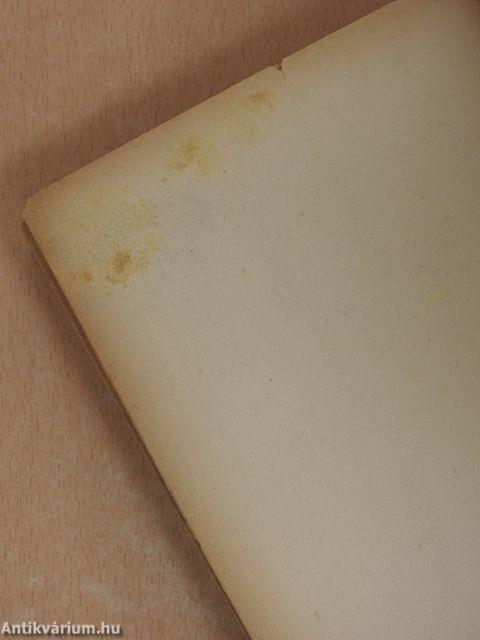 A borító kopott, sérült. Néhány lap foltos, nedvességtől foltos, javított. Belülről megerősített példány.