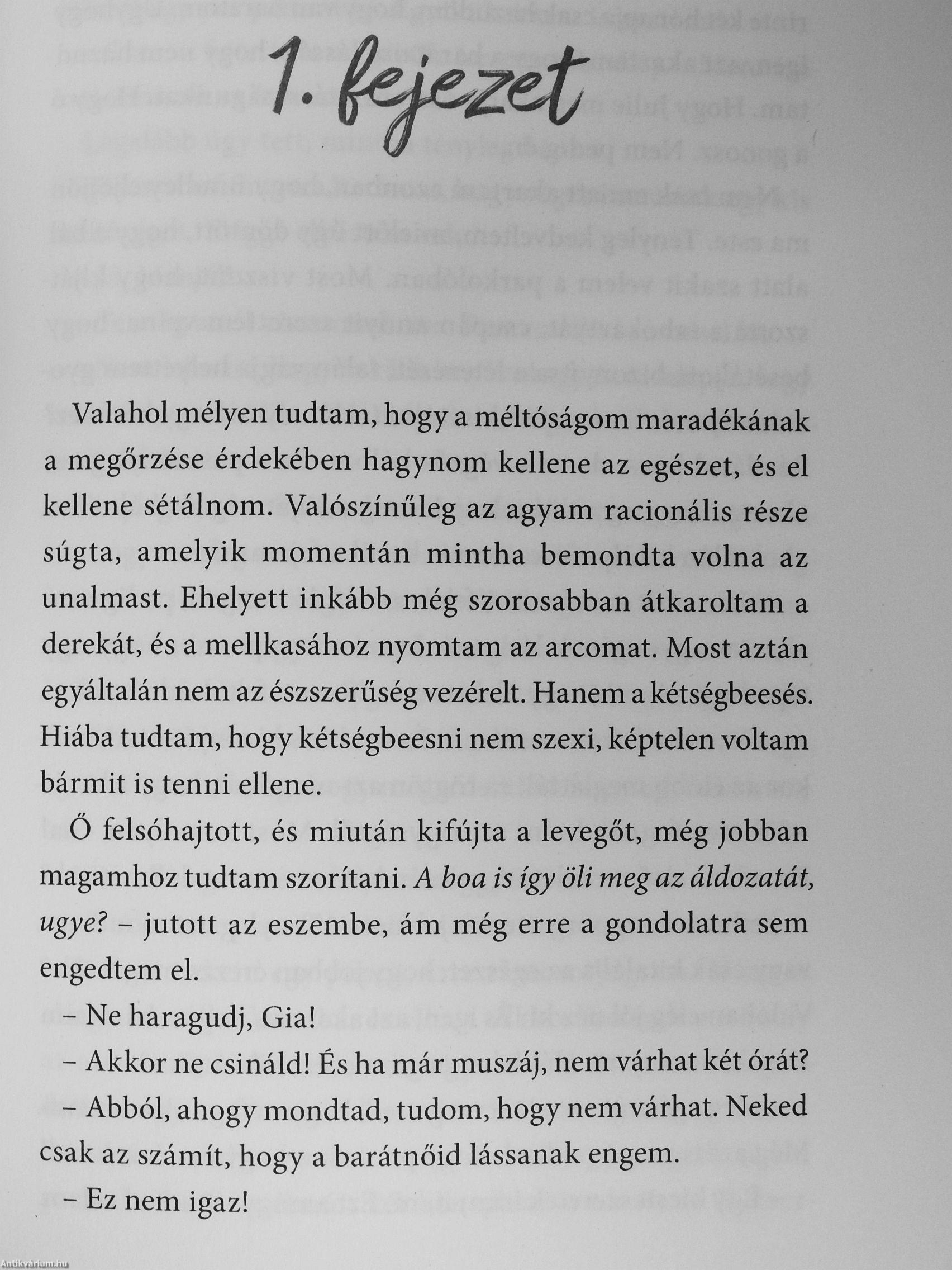 A baj csak az, hogy Gia nem tudja kiverni a fejéből a helyes ismeretlent. Aztán az élet úgy hozza, hogy viszonozhatja a fiú szívességét Tényleg egyre fontosabbak lesznek egymásnak, vagy kamu az egész? Alapulhat-e bármi is hazugságon? Mit gondolnak majd a barátnői, ha kiderül az igazság? Egyáltalán: tényleg számít, hogy ki mit gondol? ¦