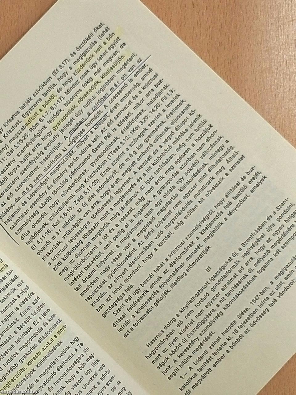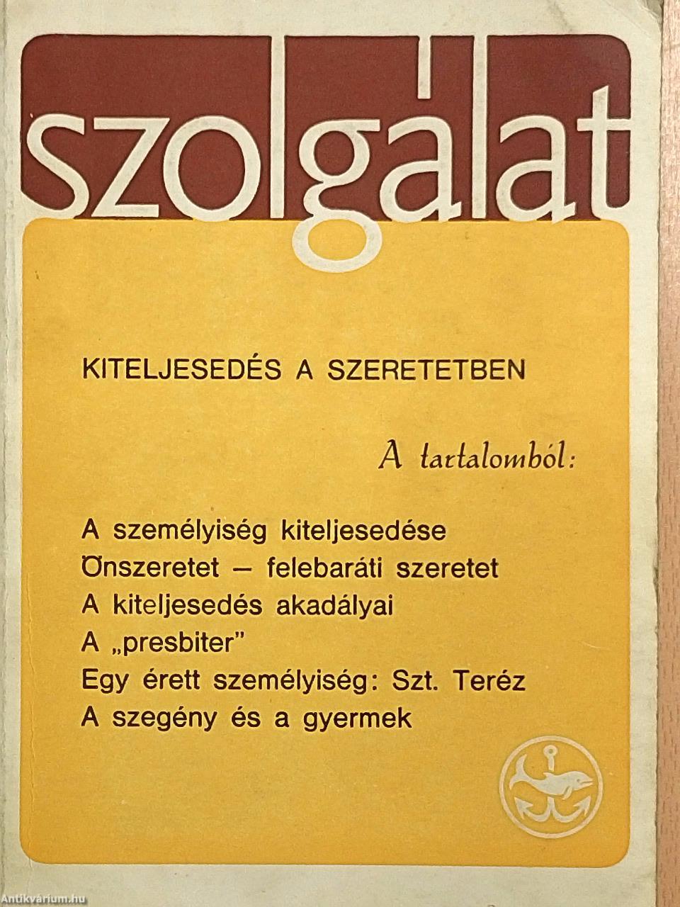 A személyiség kiteljesedése korunk egyik jelszava. A legkülönbözőbb szellemi áramlatok kecsegtetik evvel a modern embert; a pszichológia, az egzisztencializmus, a keleti miszticizmus egyes gurujai ezen az úton próbálják meghódítani szívét. A keresztények részéről is felmerül a kérdés: milyen feleletet ad erre a hit fénye? Nincs ellentét a hívő magatartás és a személyiség kiteljesedése között? A Szentírás ugyan nem ismeri a „személyiség" elvont kategóriáját, írja Alszeghy Zoltán tanulmányában, mégis megtaláljuk benne a fogálom lényeges összetevőit. Áll ez a fejlődés, kibontakozás fogálmára is. Mivel magasabb szintre helyezi tanítását, a keresztény felfogás elvonatkoztat a pszichológiai iskolák elméleteitől. A hitben kiteljesedőnek, a „presbiternek" vonásait főleg Pál levelei és János evangéliuma rajzolják meg. Erre világít rá Oarlo M. Martini milánói érsek és biblikus szákember elmélkedése. A gyakorlatban a legégetőbb kérdés azonban az önszeretet és a felebaráti szeretet kapcsolata, összeegyeztethető-e a kettő? Nem zárják-e ki egymást szükségszerűen? Tálán meglephet Kereszty Rókus felelete: "az igazi önszeretet nem akadálya, hanem feltétele a felebaráti szeretetnek" Az összhang lehetséges, mert mindkettőnek a forrása Isten megbocsátó szeretete. A szeretettől eltelt szív a kiteljesedett személyiség gyökere, a szeretet legvégső tárháza pedig Jézusnak háláiig szerető Szíve. Ettől lobbant lángra Avilai Szent Teréz, és mondott le mindarról, ami evvel összeférhetetlennek látszott. Mert a kiteljesedett, felnőtt ember éppen a szeretettől hajtva képes sok mindent elhagyni, áldozatot hozni. Avilai Teréz nemcsak végigküzdötte a kiteljesedés útját, írásaiban másokat is erre nevel. Az ő fejlődését elemzi Puskely Mária, a nagy kármelita ismert tanulmányozója, evvel is hódolva halálának 400 éves évfordulójára. A keresztény személyiség ideálja nem áll meg az egyénnél. Szükségképpen magába zárja a másik, a testvér szolgálatát. Kiváló példakép erre az 1500 éve elhunyt Szeverin, aki a mai Linz környékén működött, és tevékenysége világító oszlop volt a népvándorlás mezsgyéjén. Vecsey Lajos svájci magyar lelkész, hagiográfus állítja elénk egyéniségét a történelmi keretben. - Tévednénk azonban, ha azt hinnénk, hogy csak a rendkívüli, korszakalkotó személyiségek érhetik el a keresztény kiteljesedést. Kis Mónika cikke pontosan azt emeli ki, hogy a szegények, a kicsinyek, illetve azok, akiket ez a lelkület tölt el, találják meg a szeretet útját, képesek helyesen választani.