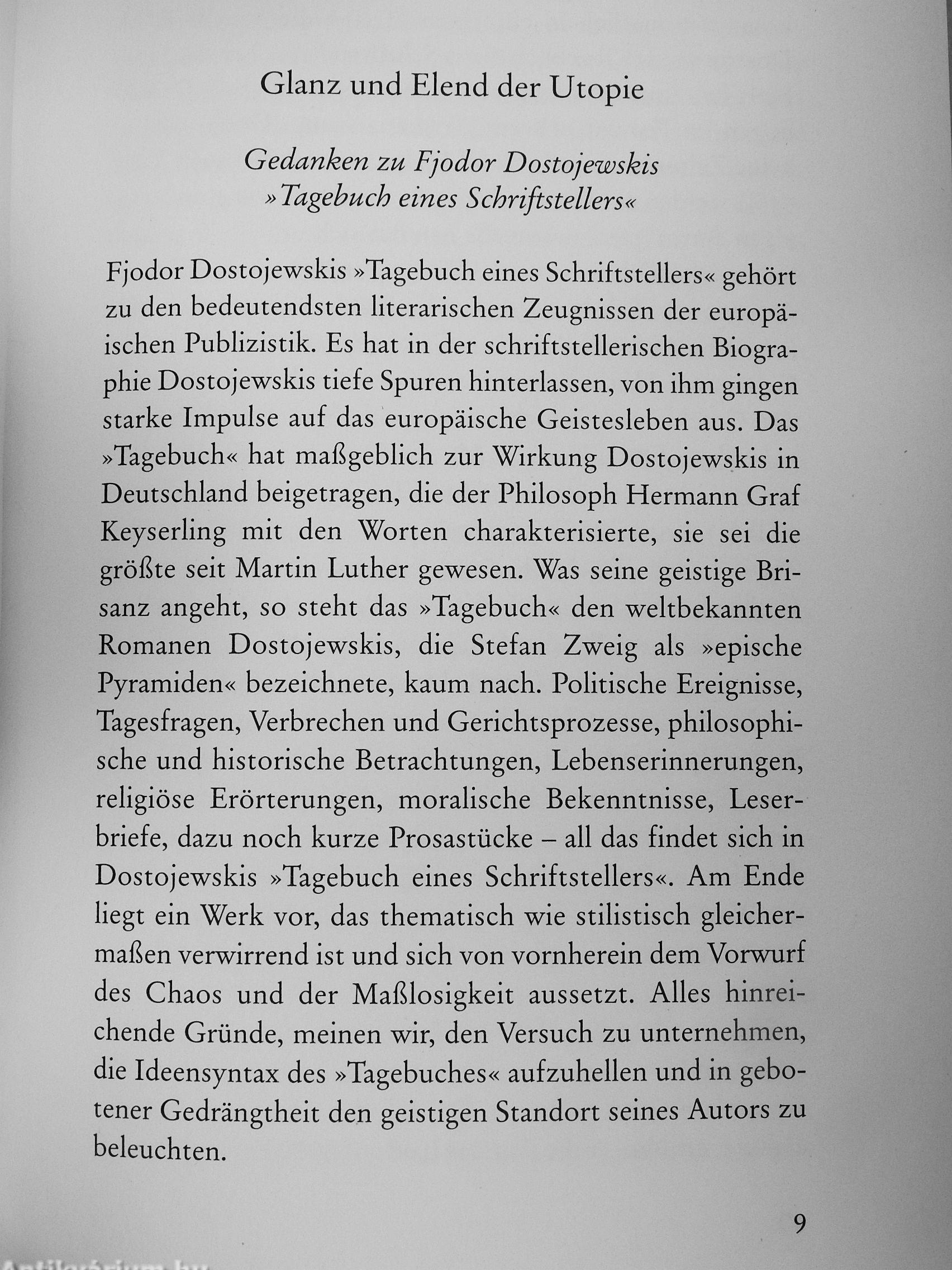 Das »Tagebuch eines Schriftstellers« gab Dostojewski in den Jahren 1873 und 1876 bis 1881 als eine Ein-Mann-Zeitschrift heraus. Aus messianischer Sicht eines leidenschaftlichen Slawophilen setzt er sich darin mit der politischen und geistigen Situation seiner Epoche auseinander. Treffsicher analysiert er aktuelle Vorgänge im Leben der russischen und europaischen Gesellschaft und entwirft kühne Visionen einer erneuerten und versöhnten Menschheit. Das »Tagebuch eines Schriftstellers« hat das europäische Geistesleben nach- , haltig beemflußt: Thomas Manns »Betrach-'' = tungen emes Unpohtischen-'waren ohne