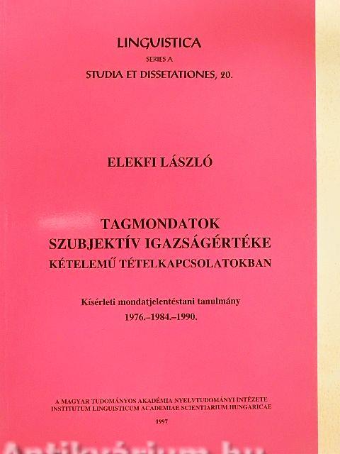 | Áttekintés a múlt idejű tételhez kapcsolódó igazságérték-viszonyokról | 140 |