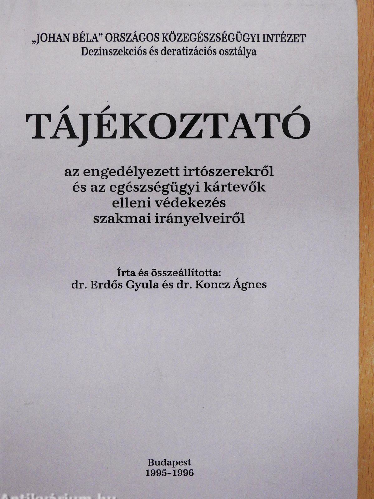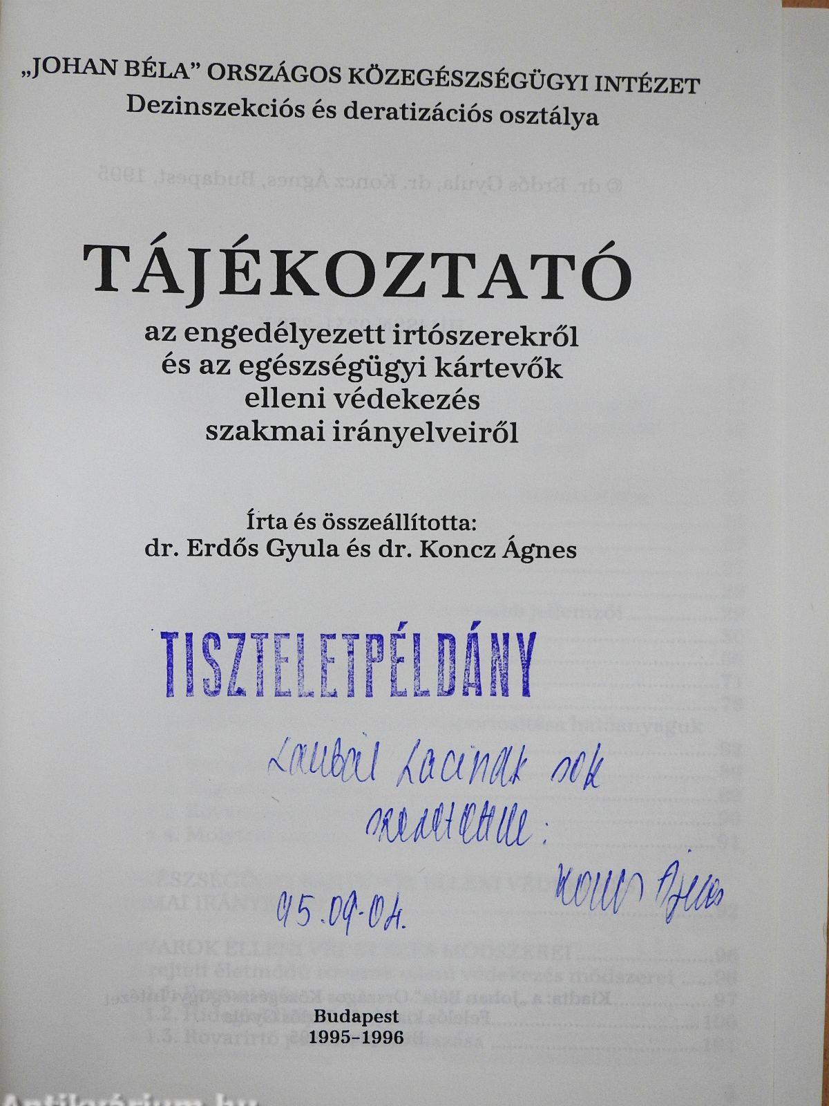 Tájékoztató az engedélyezett irtószerekről és az egészségügyi kártevők elleni védekezés szakmai irányelveiről 1995-1996 (dedikált példány)