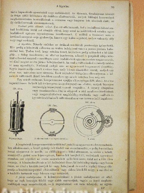 Történeti rész. A nap-, vizi és homokóra. Kerekes és kolonczos óra. Az inga mint óraszabályzó. Ingás és lengős órák. A különböző gátlók és kiegyenslítők. Az ütőmű. A chronometer, a zsebórák. Az óragyártás