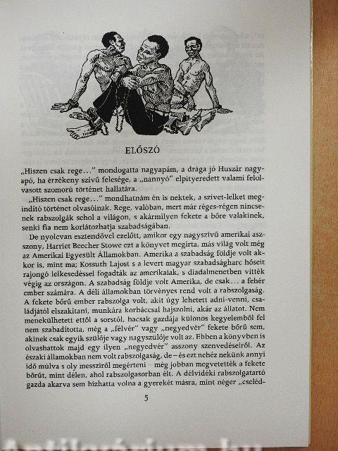 Harriet Beecher Stowe könyve betöltötte hivatását. De csodálatos módon nem felejtették el azóta sem. Ma is százezrek olvassák szerte a világon, színdarabokat faragnak, mozidarabokat csinálnak belőle, és nincs nap, hogy sokan-sokan meg ne sirassák a nemes szívű, vallásos lelkű, öreg négert, Tamás bátyát. Úgy látszik, még mindig van mit tanulni ebből a könyvből. Rabszolgák nincsenek bár, de még mindig megesik hogy különbséget teszünk ember és ember között, és nem tudjuk elképzelni, hogy ami nekünk s a magunkfajta embernek fáj, az éppen úgy fáj a másfajta embernek is.
