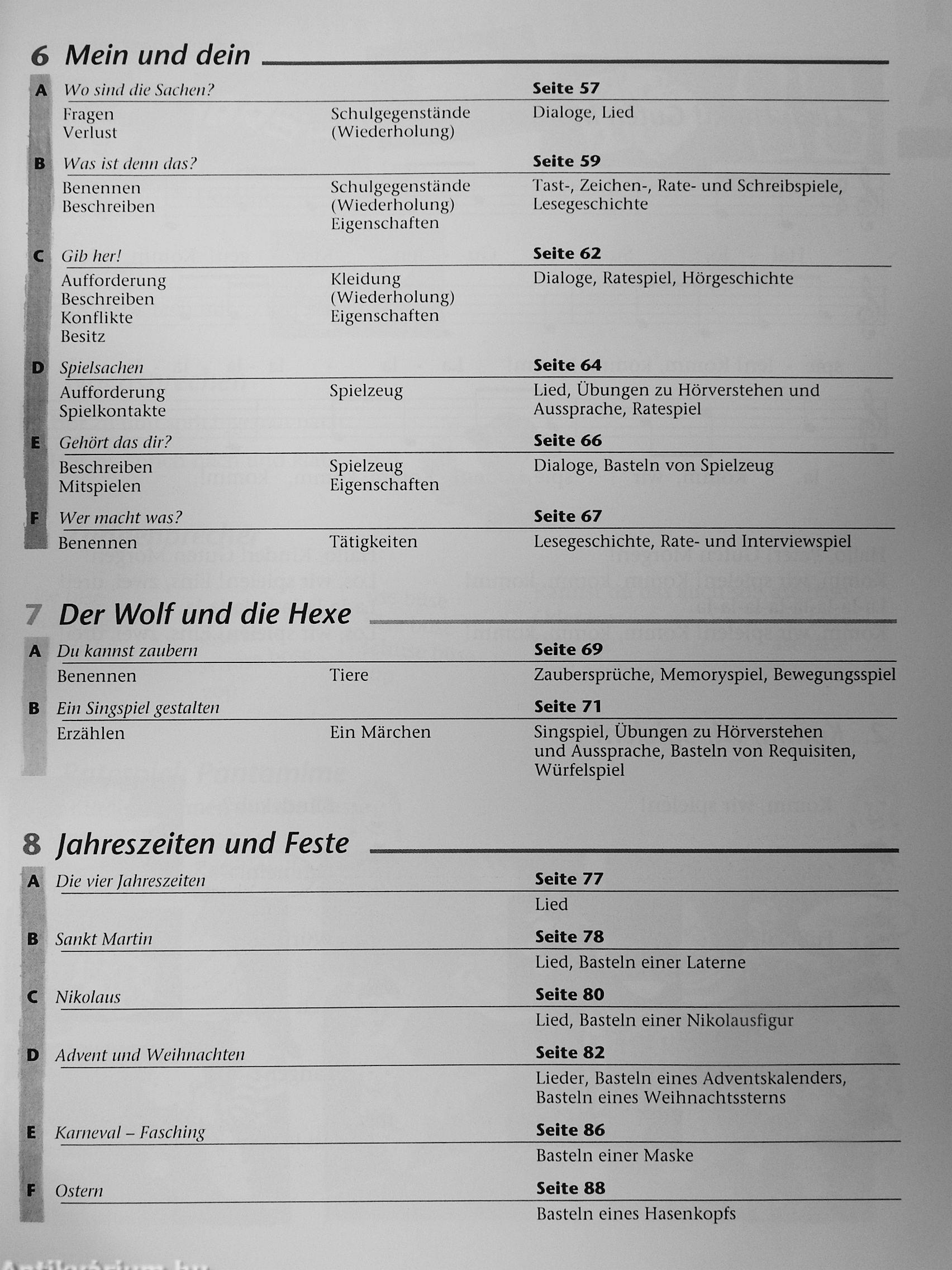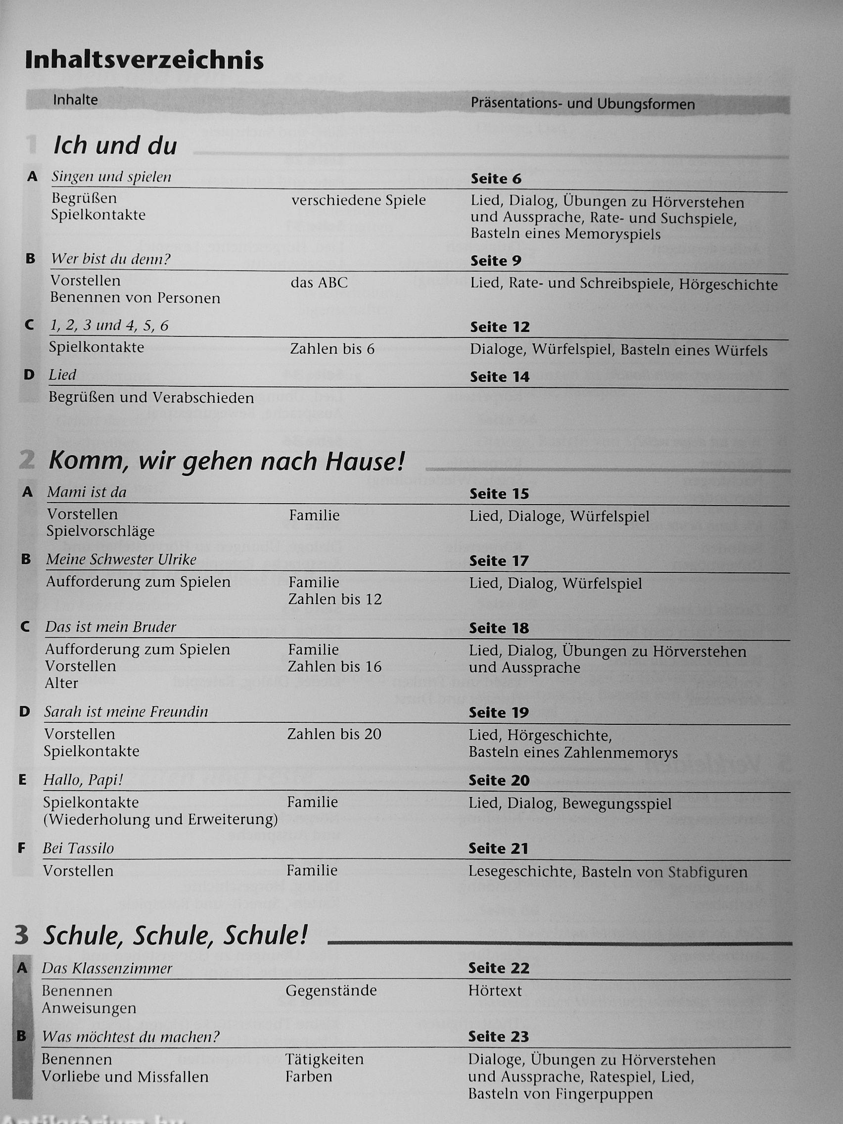 Kinder zeigen große Bereitschaft zu sprechen und sich darzustellen. In altersgemäßer, authentischer Sprache werden einfache Satzmuster vermittelt, die die Kinder vielseitig und von der ersten Stunde an in kleinen Szenen anwenden können. Aktion