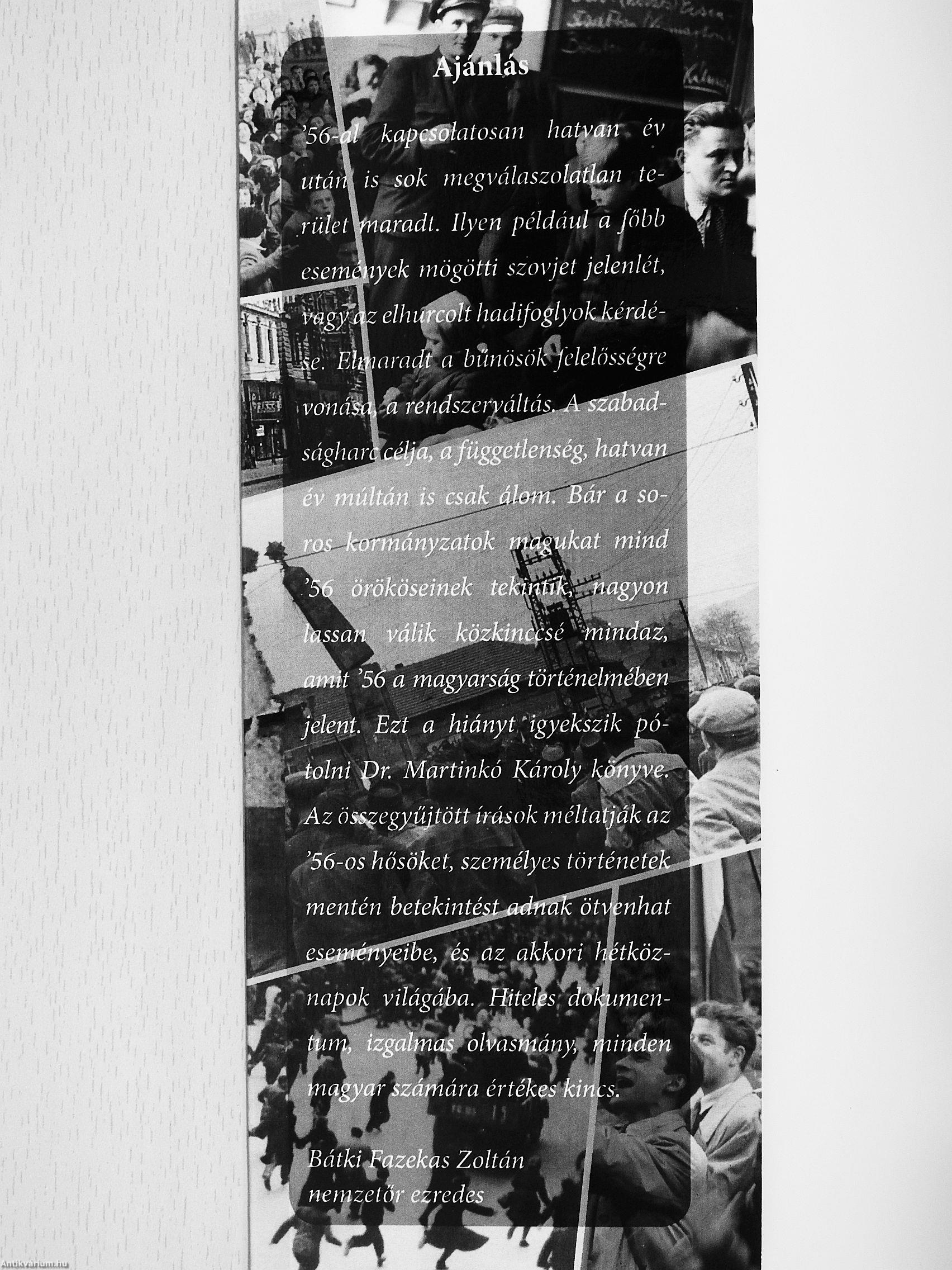 fműt '56 a magyarság történelmében jelent Ezt a hiányt'^igyekszik pó->4olni ^r. Martinkó Károly Az ösg^egy^tött írások tnéltatjak az '56-os hősöket, személyes tiirténete^ mentén betekint^-sdft'Sk öti^nhat e_sLményeibe,^és.^z ^aj^ri Imköz-f . napojí világába. Hitelfs^lfimen-