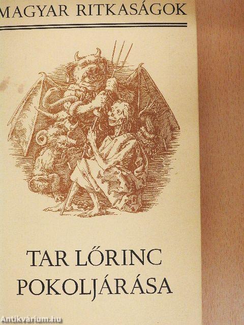 Most első ízben adjuk közre magyarul Tar Lőrinc pokoljárásának történetét, közöljük Tinódi Sebestyén költeményének Tar Lőrincre vonatkozó részletét, valamint a lovag kalandjait soroló latin nyelvű vers magyar fordítását. A Függelék teljessé teszi a Tar Lőrincre vonatkozó irodalmat: itt olvasható máig kiadatlan, saját kezű levelének szövege, valamint a vele kapcsolatos, illetve özvegyére vonatkozó királyi oklevelek.