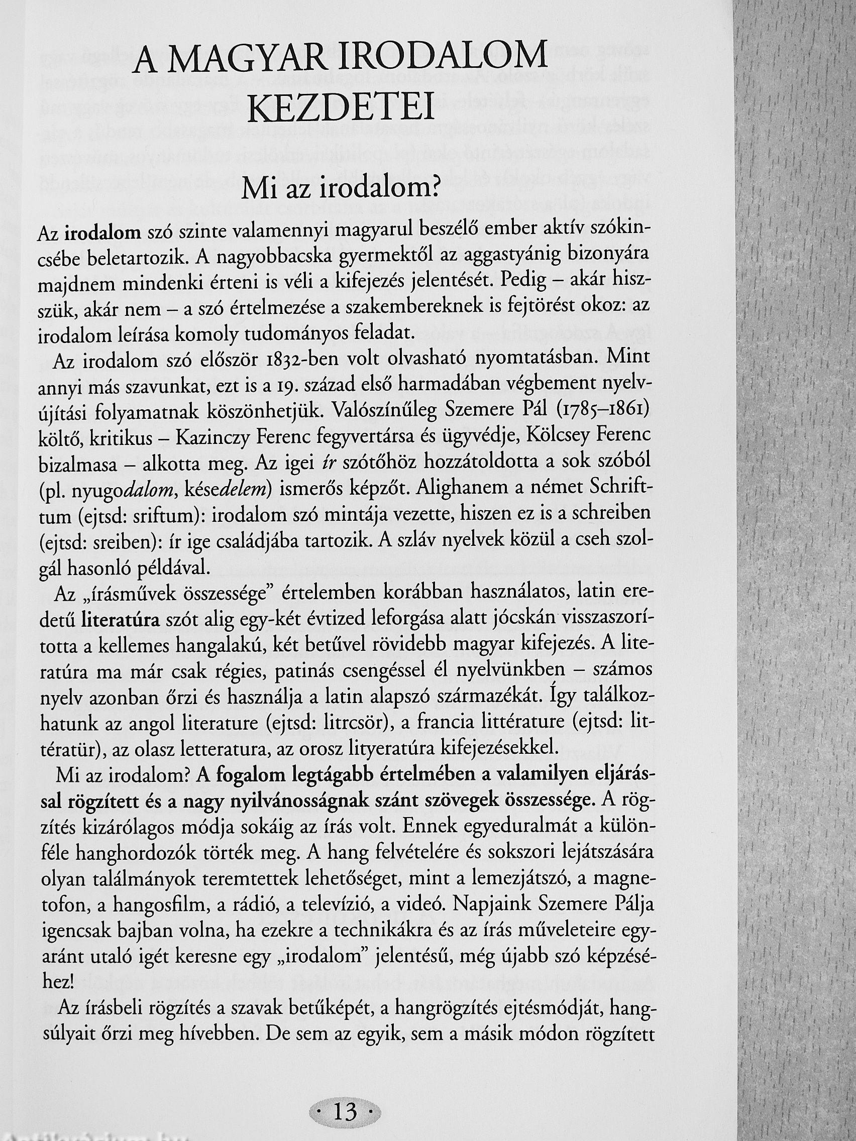 magyar irodalomhoz tartozó szövegektől a 19. század végéig tartó corszak kronologikus feldolgozására is.