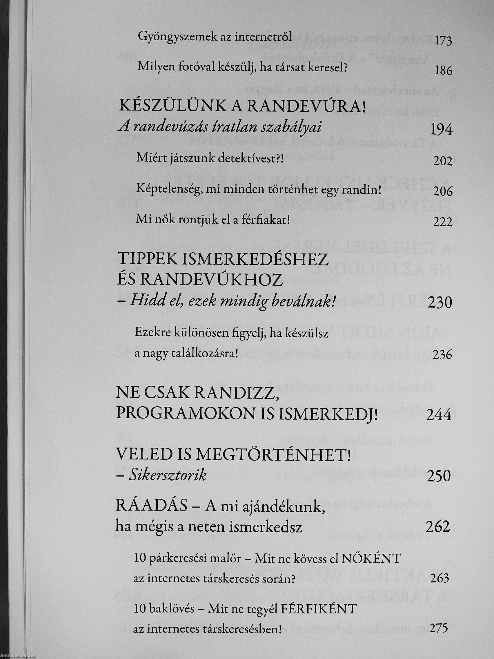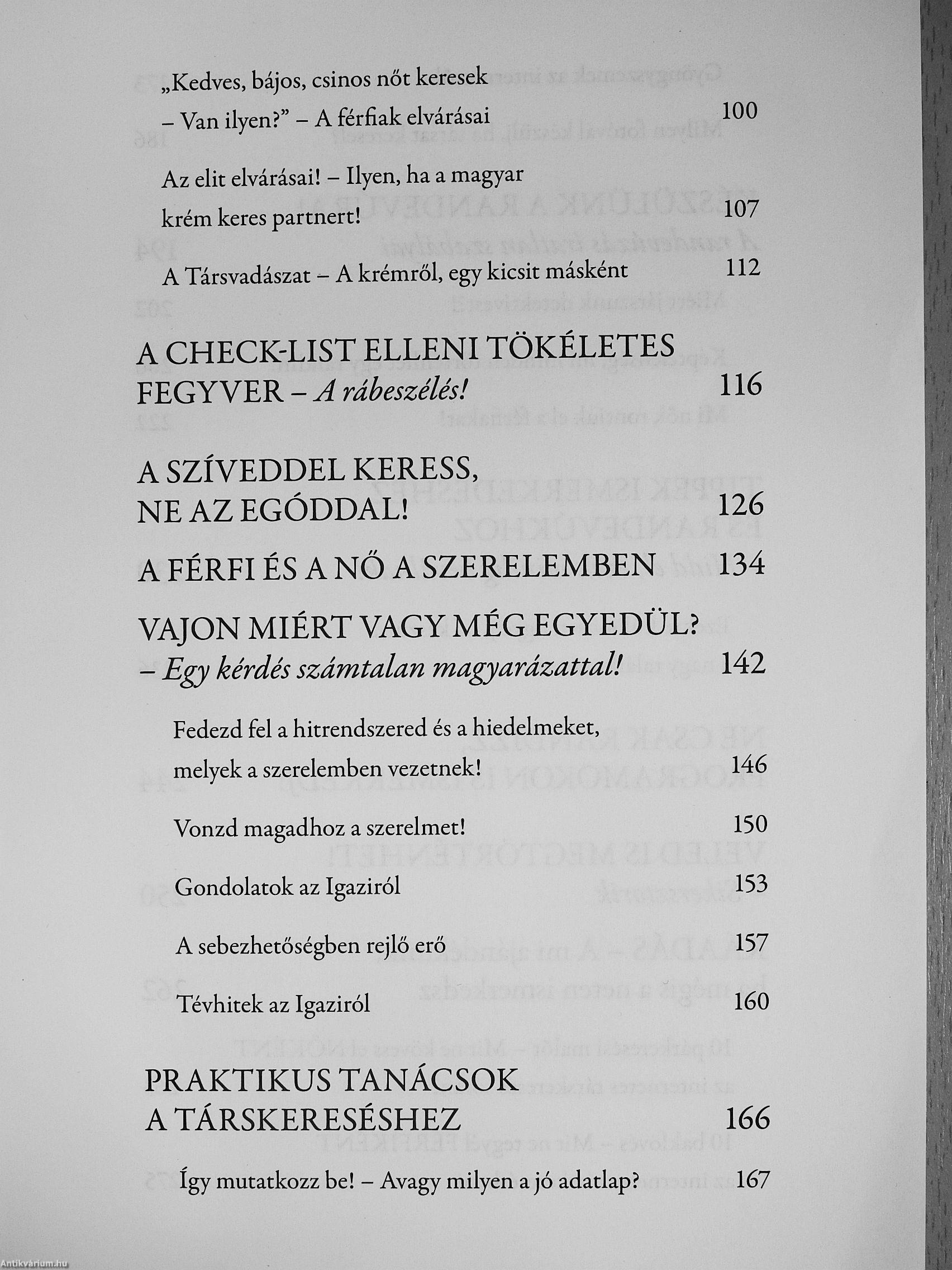 Ez a könyv egy évtized megküzdött és összegyűjtött tapasztalataira épül. Szakértő alapokon, pszichológiai műveltséggel, őszintén, tabuk nélkül szól az olvasóhoz. Hiteles történeteken át vezet be párkereső félelmeinkbe, nehézségeinkbe. Szembesít azzal, hogyan ismerkedünk manapság, hol „csúszunk el" ebben. Meggyőz arról, hogy az önmagunkkal szembesülésen át juthatunk el ahhoz a bátorsághoz, lelki szabadsághoz, hogy a „szívünkkel tudjunk keresni" és „adni merjük, tudjuk magunkat".