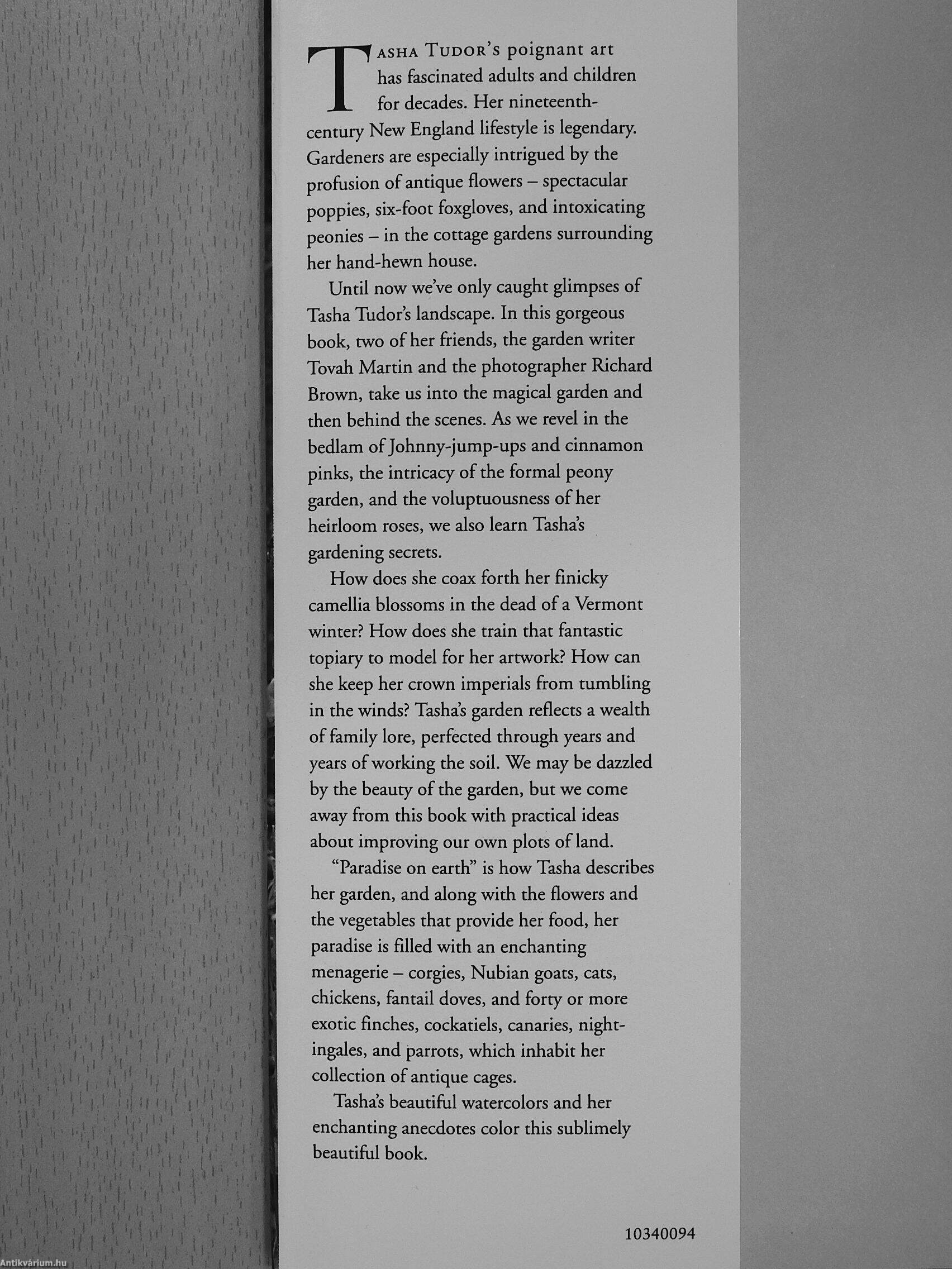 Until now we've only caught glimpses of Tasha Tudor's landscape. In this gorgeous book, two of her friends, the garden writer Tovah Martin and the photographer Richard Brown, take us into the magical garden and then behind the scenes. As we revel in the bedlam of Johnny-jump-ups and cinnamon pinks, the intricacy of the formal peony garden, and the voluptuousness of her heirloom roses, we also learn Tasha's gardening secrets.