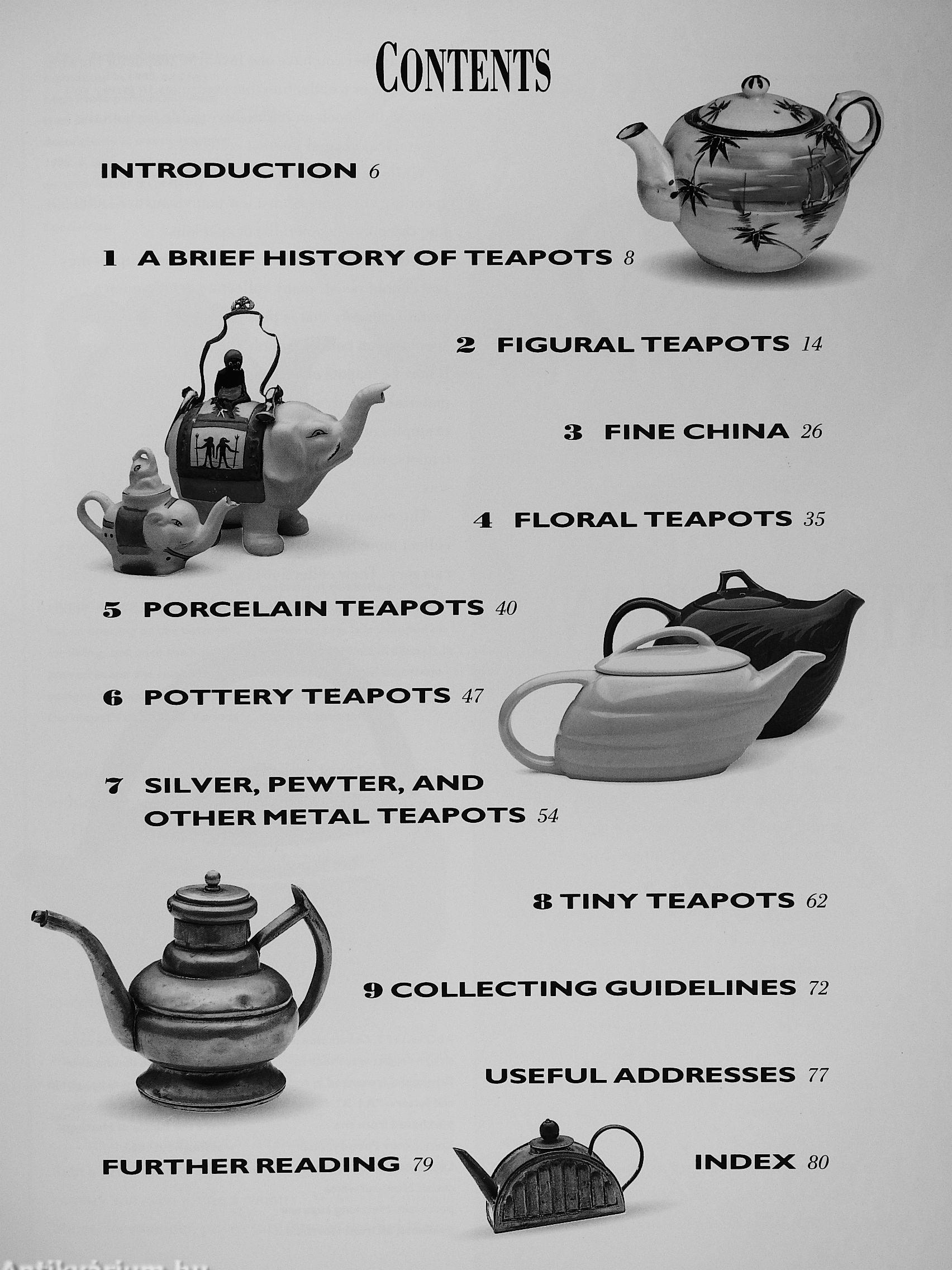 Teapots of all shapes and types arc high on the list of collecting obsessions. This book tells the story of teapots, and of their many different styles: British and Oriental, eccentric and classic.