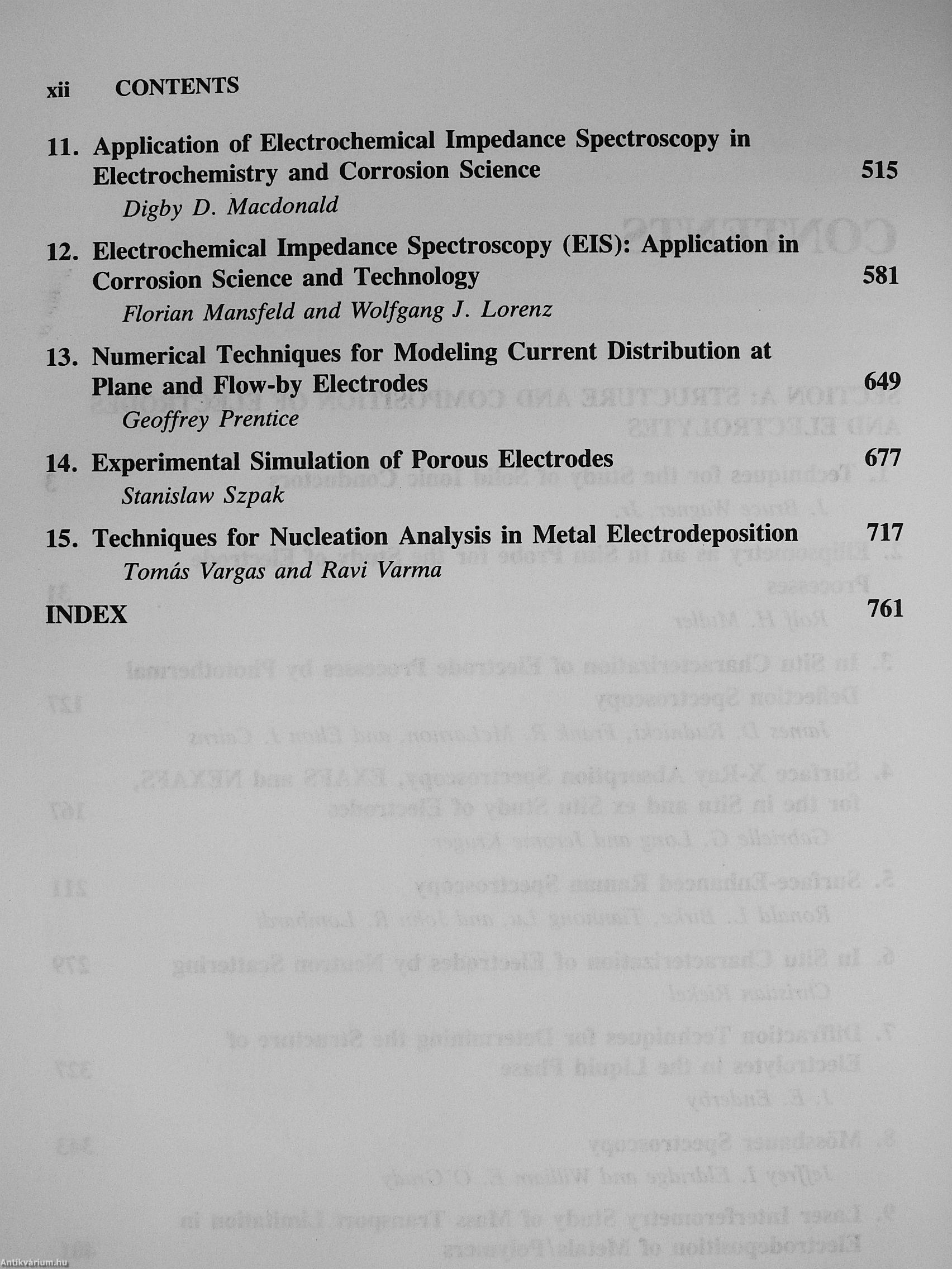 The book is divided into three sections; the first part provides articles on techniques appropriate for in situ characterization of structures and compositions of electrodes and electrolytes as well as electrochemical processes. Articles on electrochemical measurement techniques are included in the second part. The third part provides a couple of articles on modeling tools.