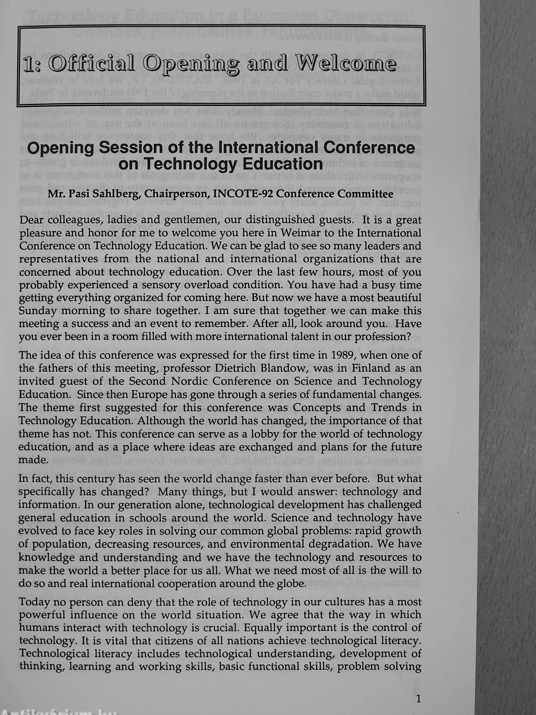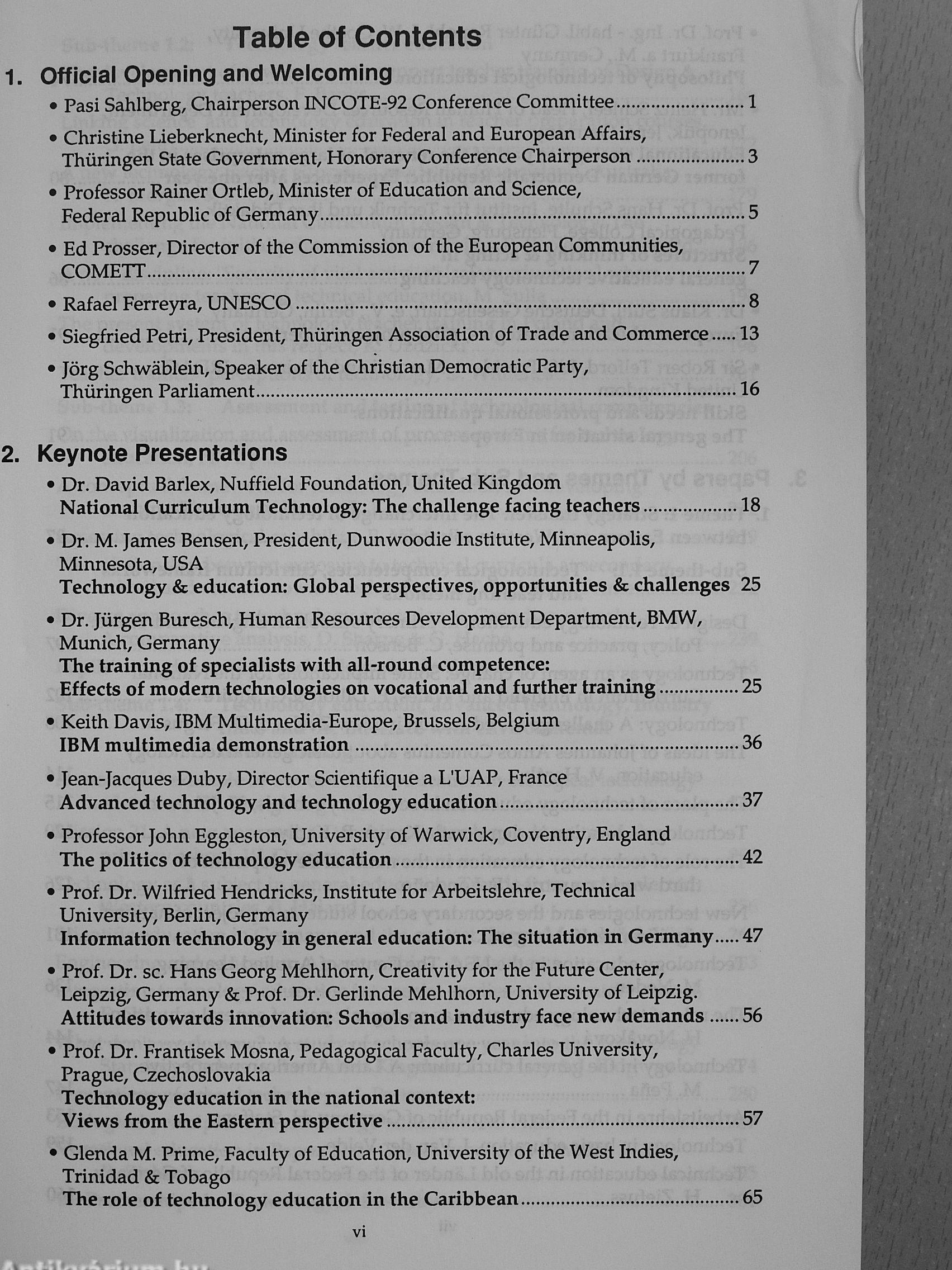 Proceedings of the First International Conference on Technology Education/April 1992, Weimar, Germany