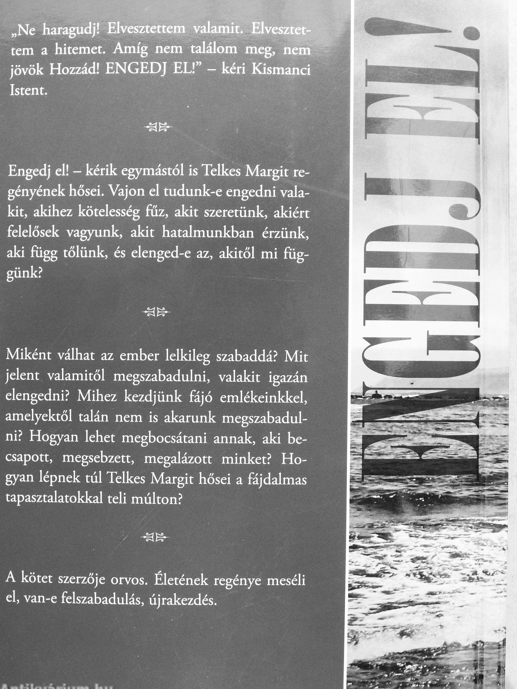 Engedj el! - kérik egymástól is Telkes Margit regényének hősei. Vajon el tudunk-e engedni vala-kit, akihez kötelesség fuz, akit szeretünk, akiért .u felelősek vagyunk, akit...