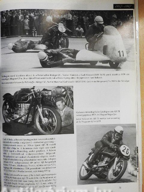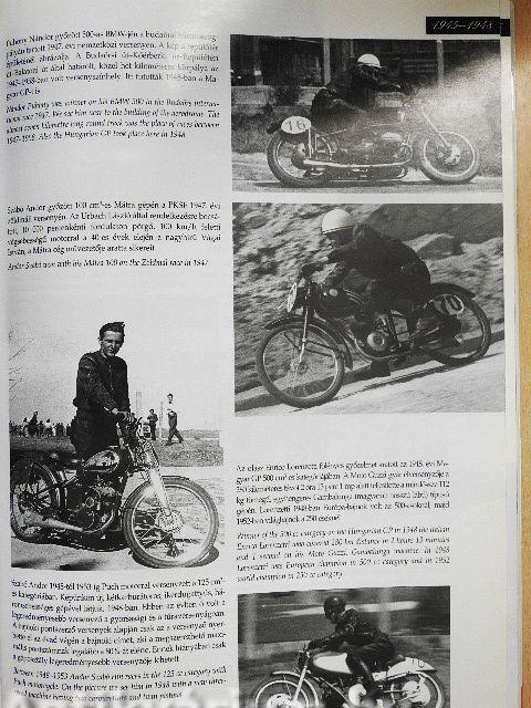 A motorversenyzés szinte egyidős a motorkerékpárral, és az elmúlt bő száz évben mit sem változott a lényeg: minél gyorsabban hajtani, és minél kevesebbet hibázni. No és persze győzni. Ez az utóbbi, mármint a győzelem vágya sok ezer nagyszerű sportembert vonzott a versenypályákra Magyarországon is. Valójában két kiemelkedő időszakot tarthatunk nyilván a hazai motorsport történelmében: a húszas évek második felét, amikor az általános gazdasági fellendülés következtében ugrásszerűen megnőtt a motorizáció, és a negyvenes, ötvenes, hatvanas éveket, amikor a legszebb eredmények születtek. E kiadvány döntően az utóbbi, a második világháború utáni időszakkal foglalkozik, azzal a korral, amikor a nagy társadalmi fordulatok hatására vagy legalábbis azoktól nem függetlenül - a politika hathatós támogatásával - korábban soha nem tapasztalt népszerűségre tett szert a motorsport. Ebben nem kis szerepet játszott a hazai motorkerékpár-gyártás fellendülése is, hiszen a Csepeli Motorkerékpárgyár, illetve a Danuvia nagy sorozatban készített olcsó motorjai jó bázist jelentettek a tömegsportnak, és a nagy szériás gyártás mellett futotta versenyműhelyek fenntartására, versenygépek készítésére. De maga a kor is kedvezett a motorsportnak. Az emberek igényelték a látványos programokat, szerették látni a veszélyt, a sokszor karnyújtásnyira zajló száguldást, ünnepelni akarták a bátrakat, hősöknek látni a győzteseket. Egy vesztes háború után magyar győzelemnek örülni - volt ebben valami nagy társadalmi várakozás, és a magyar sport - benne a motorsport is - megfelelt ennek az elvárásnak. Aranyérem a Hatnaposon, győzelem a Bol d'Oron, a 24 órás futamon, vagy épp a népligeti nagydíjakon - kellettek ezek a sikerek. És más volt a szórakozásigény. Ahogy egy régi, jeles versenyző fogalmazott: „a melós vasárnap kiment a ligetbe, megnézte Kuruczot a Nortonon, aztán átsétált a Népstadionba, és megnézte Puskásékat. Utána megivott egy korsó sört, és megvolt a vasárnapi szórakozása". Ma senki sem ül fel a villamosra, hogy motorversenyre menjen... Azok a csodálatos férfiak - mondhatnánk, ha nem tűnnének fel rendre hölgyek is a rajtszámos motorokon, bőrruhában, jelezve, ez már egy emancipálódott világ volt, amikor a nők nemcsak a gyárakban, a földeken „zúgó" traktorok nyergében mutatták magukat egyenrangúnak, hanem a motorsportban is. És mint a képek elárulják, senki nem koncentrált túlzottan a külsőre, a divatra, a motorkerékpárok felkészítettsége sem volt mindig tökéletesnek mondható, de a szív, a valódi lelkesedés sokat pótolt. És elképesztő teljesítményeknek lehettek tanúi a nézők. Mostanában sokan hajlamosak lebecsülni az ötvenes, hatvanas évek motorversenyzőinek bravúrjait. Pedig lehet, hogy meglepődne egy-két mai „sztár", ha egy kis időutazás nyomán, úgy négy évtizedet visszaugorva ott találná magát a bakteleszkópos BMW nyergében, és megpróbálná Puhonyt utánozva tízméteres ugratásokkal szórakoztatni a nézőket, vagy a Városliget kockakővel, töredezett betonnal borított pályáján kellene tartani az iramot Szabó Kuksi Gilerájával, amely a kezdetleges rugózás és a mai szemmel nevetséges fék ellenére is észveszejtően gyors volt. Mert a versenyzőn múlik majdnem minden. Ha igazán erős az akarat benne, nincs számára lehetetlen. Sok bizonyságot láthatunk erre az album képein. Könyvünkbe természetesen nem kerülhetett be minden kép, amit szerettünk volna. Igyekeztünk a fontos események mindegyikéről képet adni, és már most tudjuk, hogy ebbéli szándékunk nem volt maradéktalanul sikeres. Ugyancsak feltett szándékunk volt, hogy minél több versenyzőt bemutassunk a kortársaknak és az utókornak, de amint lenni szokott, most is vannak hiányzók - a mi hibánkból. Mentségként csak egy reményünk lehet: nem ez az album lesz az utolsó.
