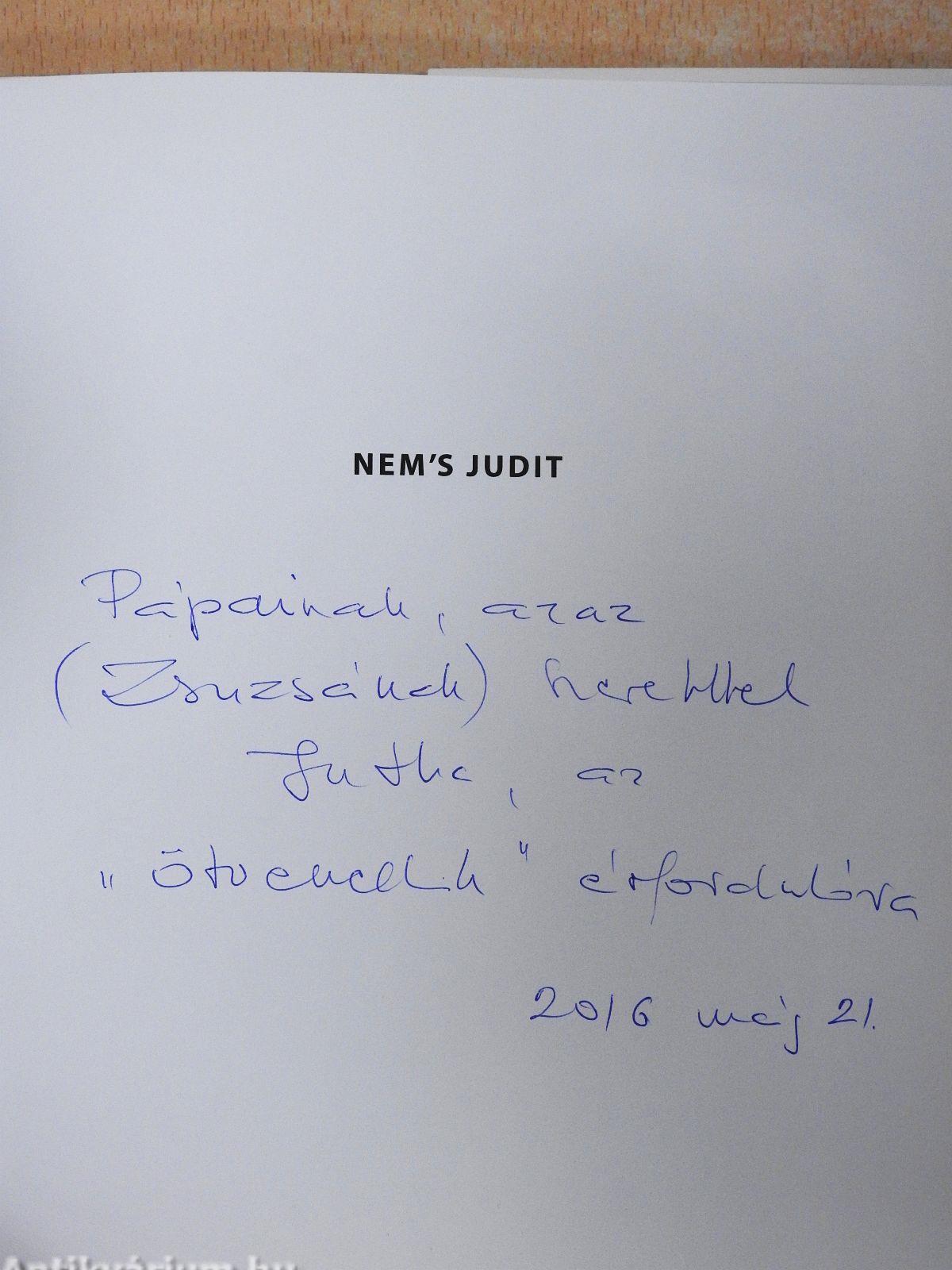 | Megjegyzés: | Nem's Judit grafikus, festőművész által dedikált példány. Színes reprodukciókkal, fekete-fehér fotóval. |