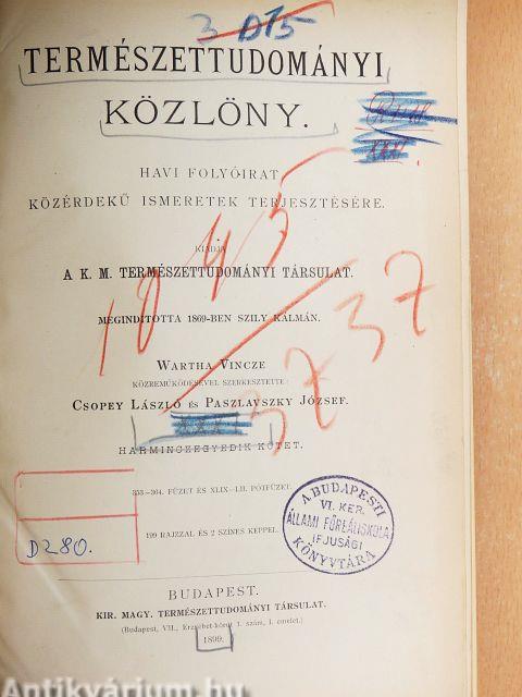 Természettudományi Közlöny 1899. január-december