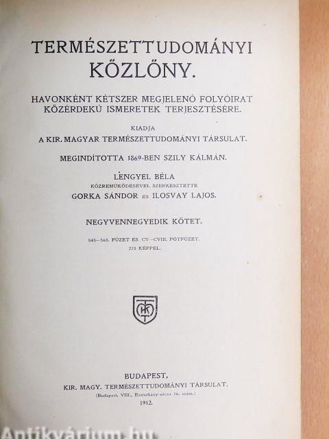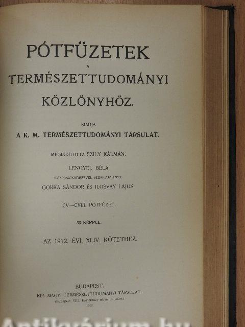 Természettudományi Közlöny 1912. január-december/Pótfüzetek a Természettudományi Közlönyhöz 1912. január-december