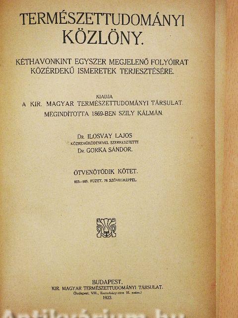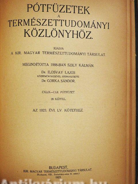 Természettudományi Közlöny 1923. január-december/Pótfüzetek a Természettudományi Közlönyhöz 1923. január-december