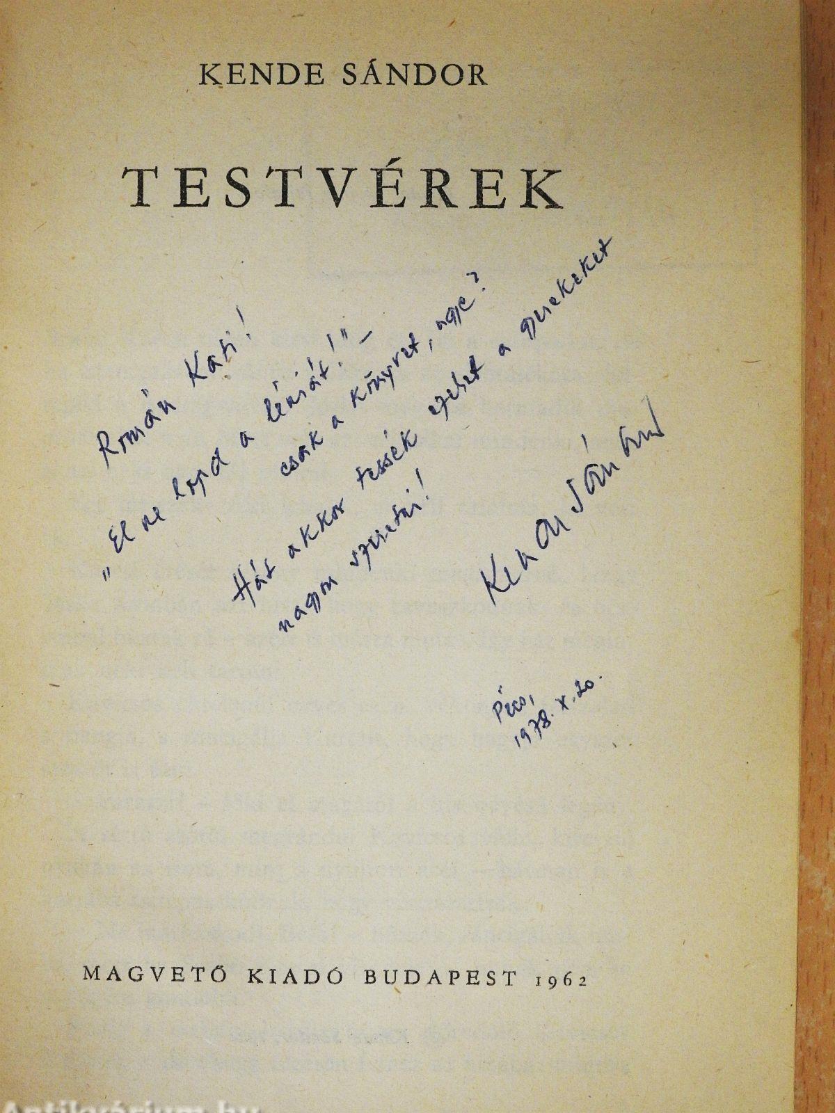 | Megjegyzés: | Kende Sándor szerző által dedikált példány. |