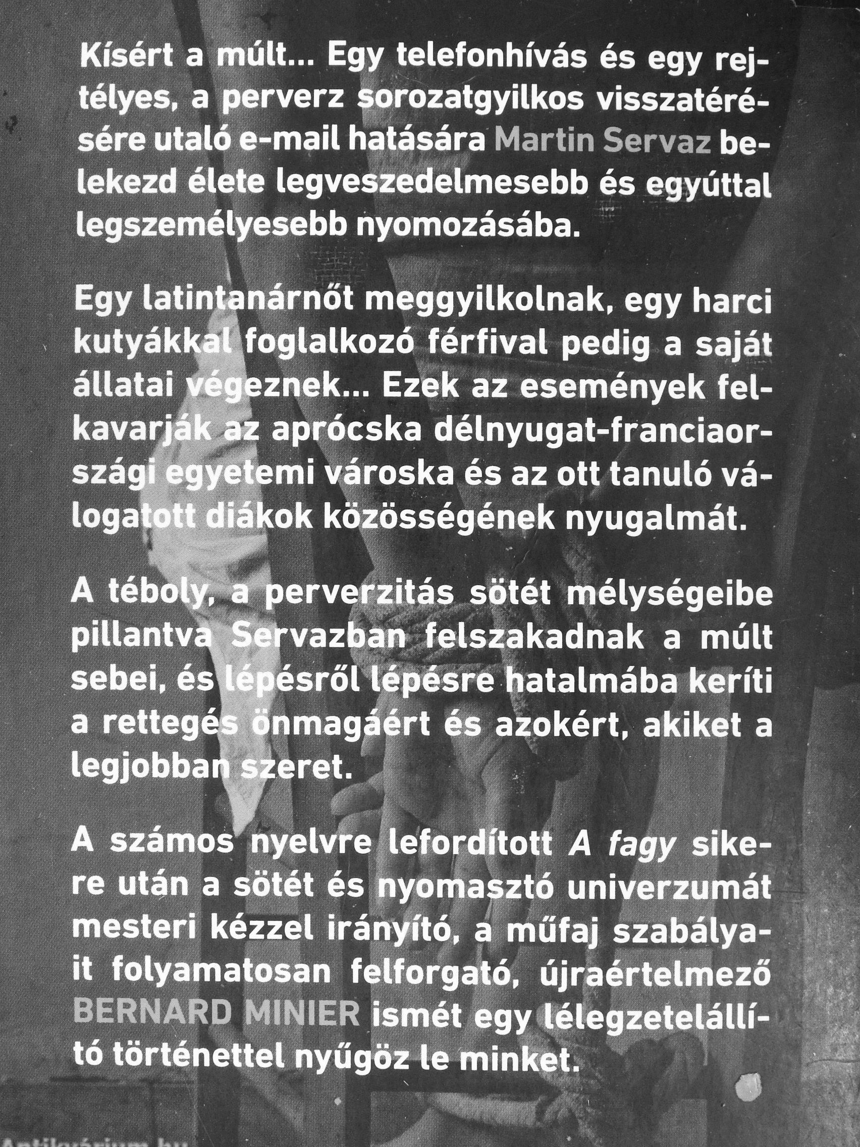 Kísért a múlt Egy telefonhívás és egy rejtélyes, a perverz |Kirozatgyilkos visszatérésére utaló e-mail hatására Martín Servaz belekezd élete legveszedelmesebb és egyúttal legszemélyesebb nyomozásába. "