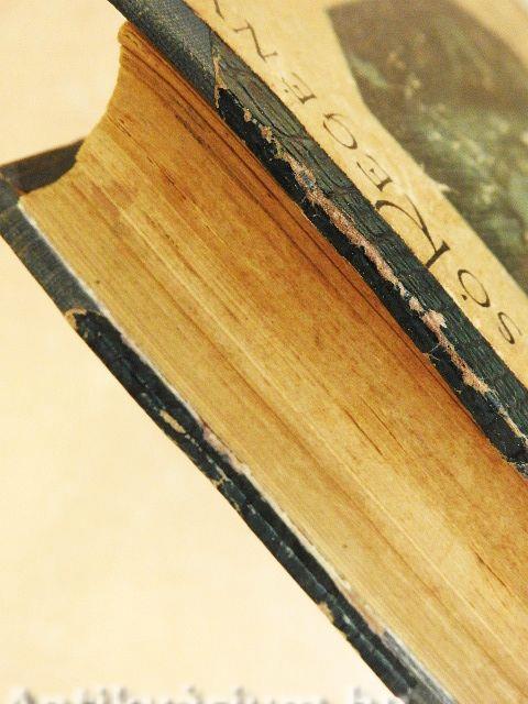 A borító kopott, a lapélek és néhány lap foltos. Az első mű eredeti borítóját az első kötéstáblára ragasztották.
