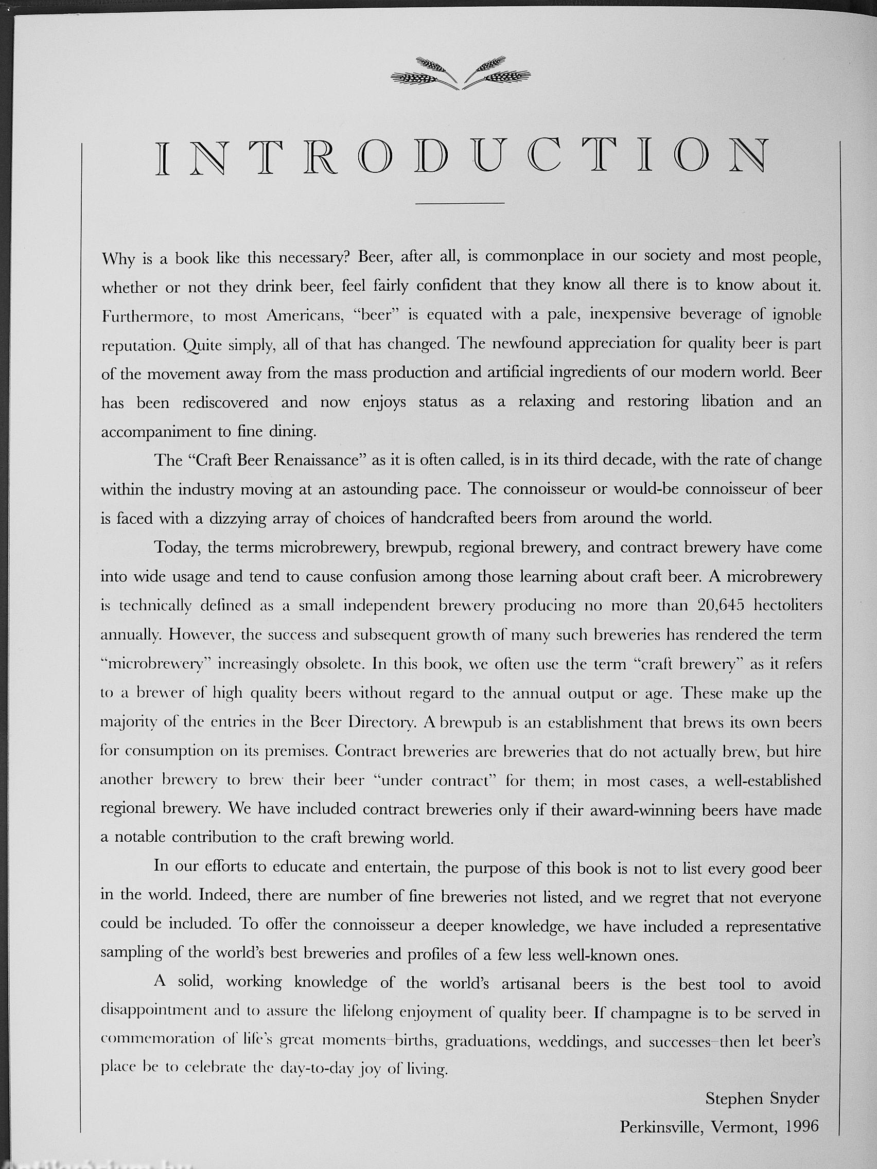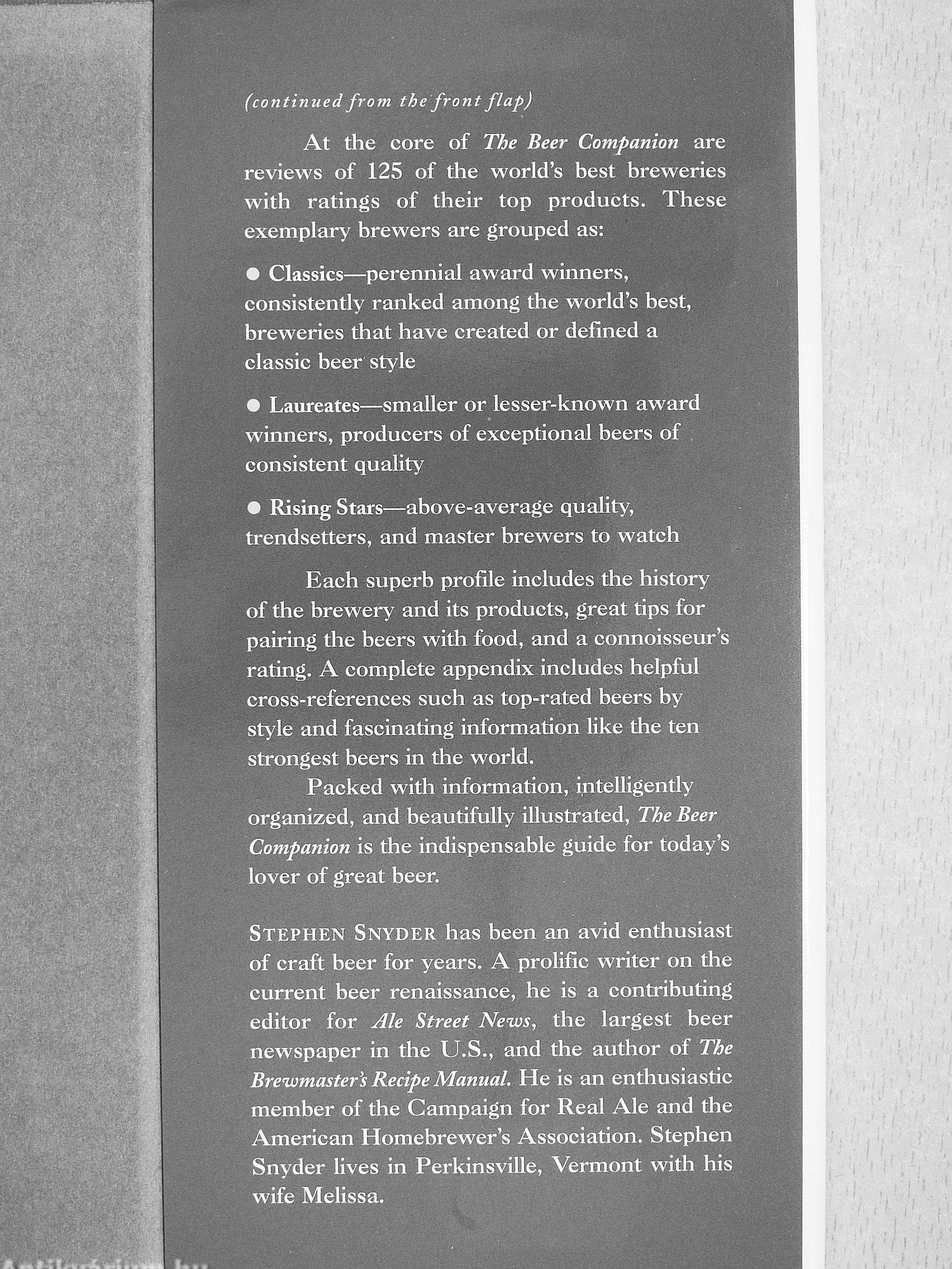 Stephen Snyder has been an avid enthusiast of craft beer for years. A prolific writer on the current beer renaissance, he is a contributing editor for Ale Street News, the largest beer newspaper in the U.S., and the author of The Brewmaster's Recipe Manual. He is an enthusiastic member of the Campaign for Real Ale and the American Homebrewer's Association. Stephen Snyder lives in Perkinsville, Vermont with his wife Melissa.