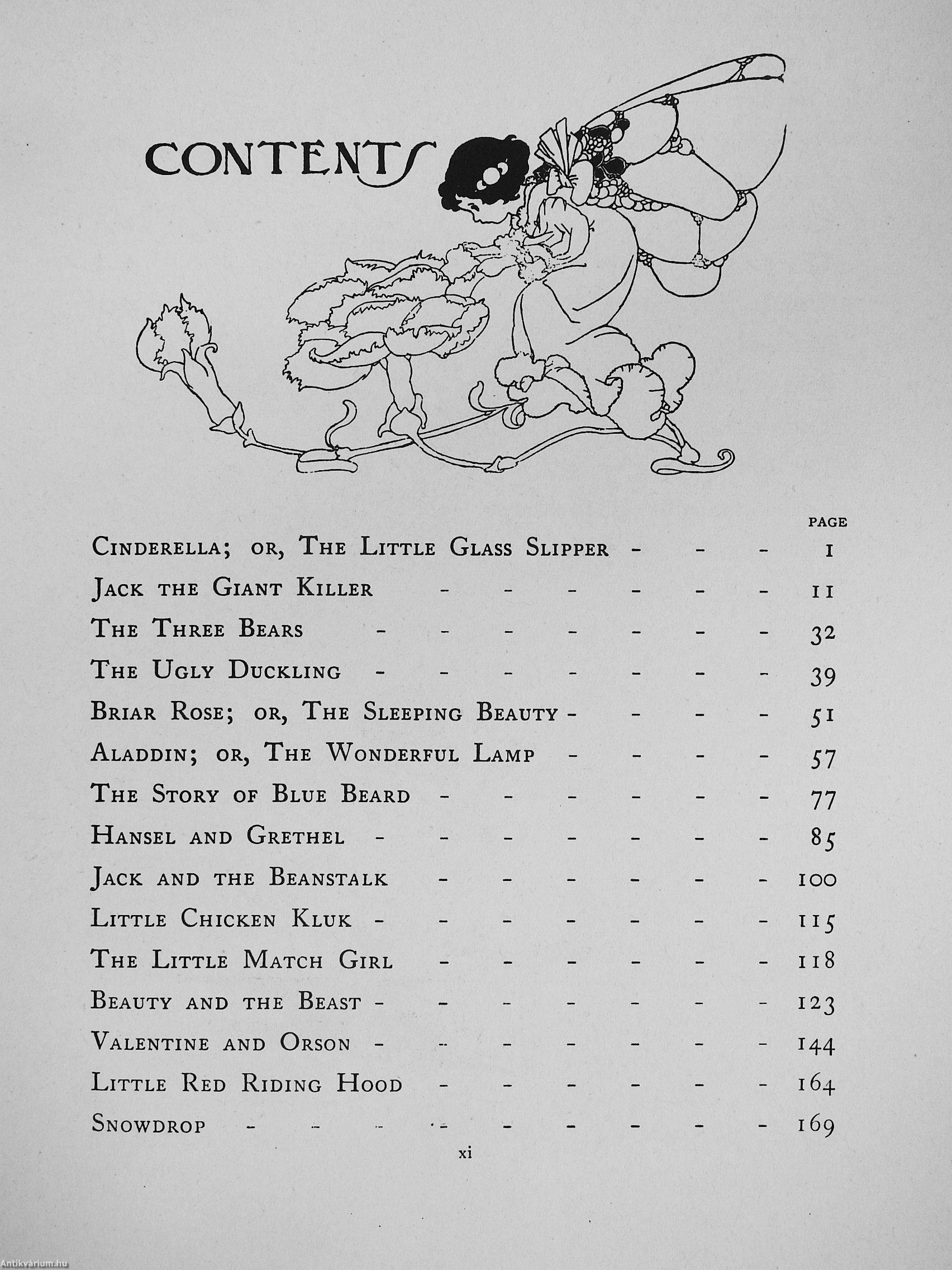 This collection of fairy tale favorites brings home to us the fact that the nursery knows no frontiers. The world is its country, and any author - from any region - is surely welcomed so long as he or she is a story teller. Included here are selected tales from The Arabian Nights', from the hunch-backed Greek slave Aesop, to whom it is believed we owe the many fables associated with his name; from the courtly Frenchman, Charles Per-rault; from the German Brothers Grimm; and from that dearest of childhood's friends, the Danish Hans Christian Andersen. Also found here arc stories from unknown authors -such well-known English classics as Jack the Giant-Killer, Jack and the Beanstalk, and Dick Whittington and His Cat. Some of these stories have been told in many ways, by different people in different countries, so that it is difficult to know precisely where they started. Cinderella, for example, has had her romance set forth in various ways in various lands: to English speakers she is Cinderella, in the French talcs of Monsieur Perrault she is Cendrillon, in the German tales of Grimm she is Ashputtel.