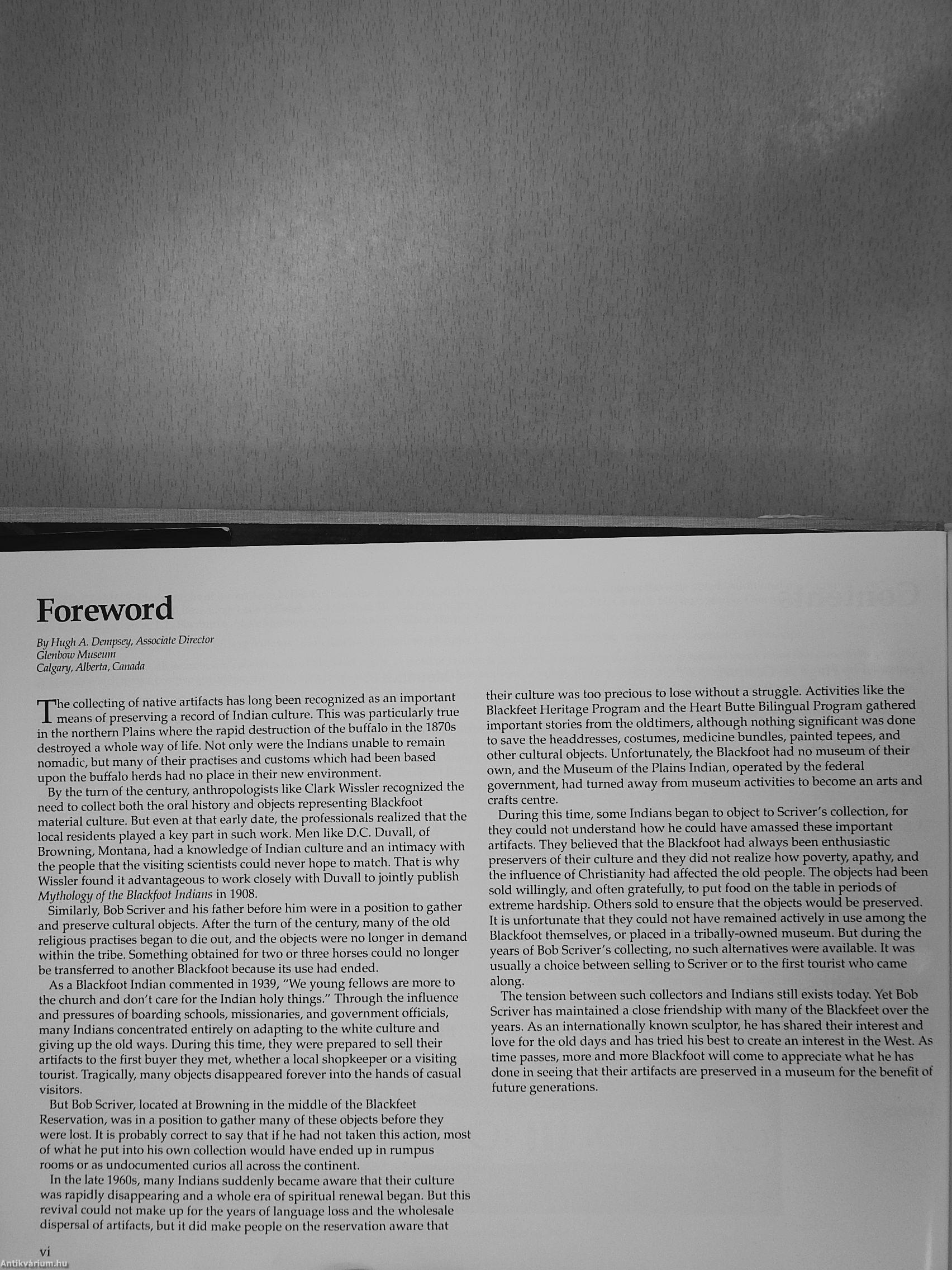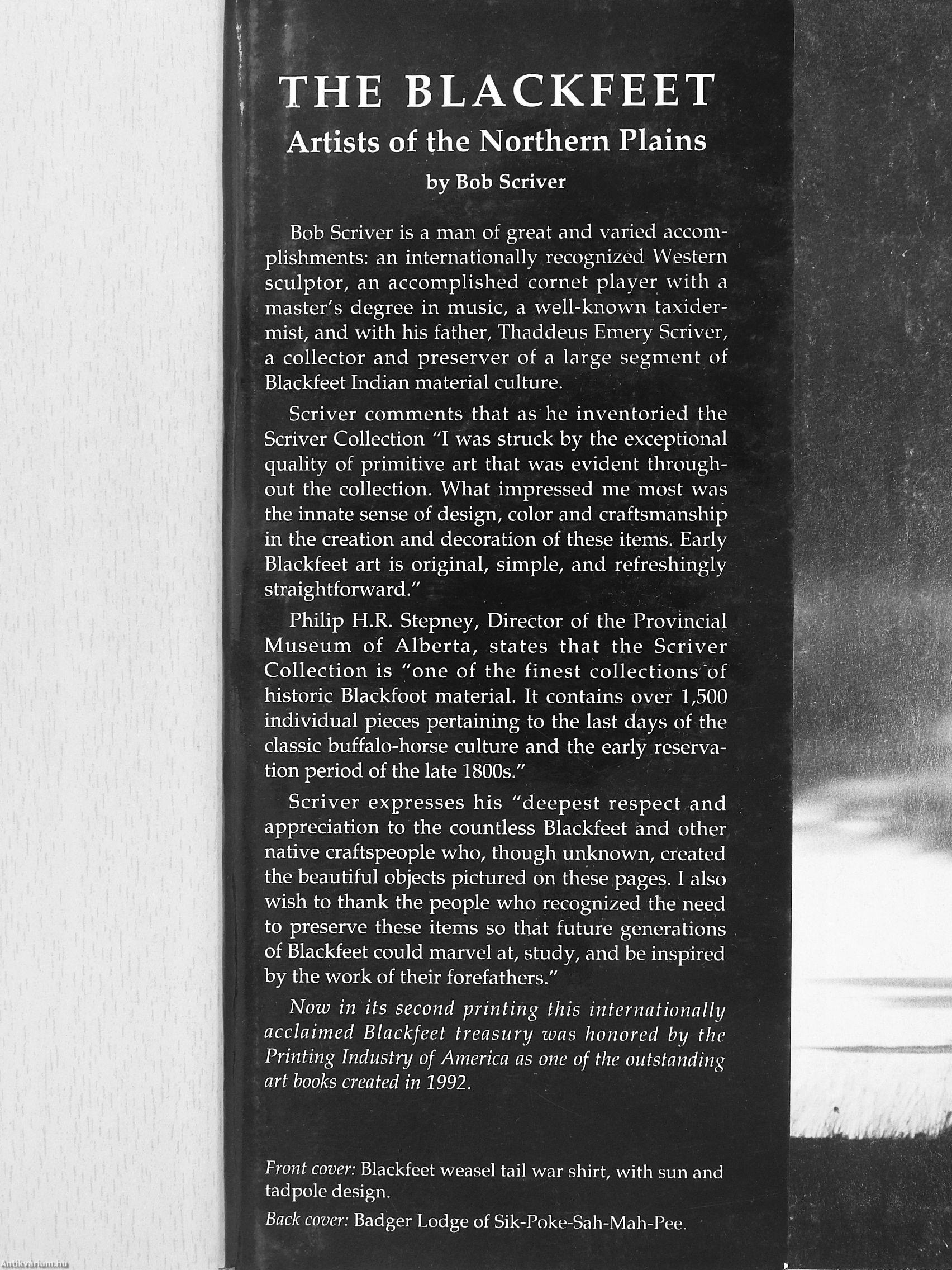 Scriver expresses his "deepest respect and appreciation to the countless Blackfeet and other native craftspeople who, though unknown, created the beautiful objects pictured on these pages. I also wish to thank the people who recognized the need to preserve these items so that future generations of Blackfeet could marvel at, study, and be inspired by the work of their forefathers."