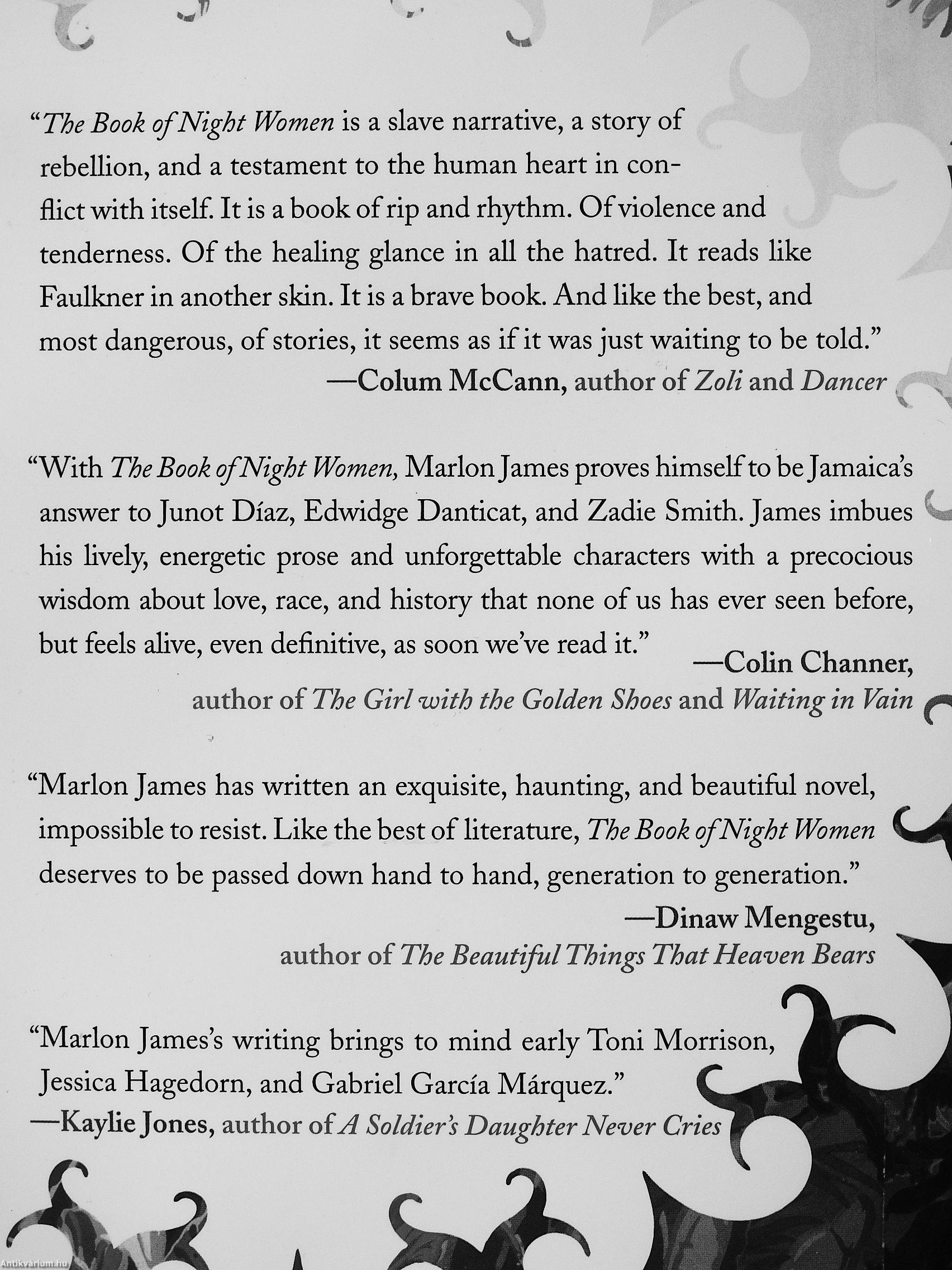 "With The Book of Night Women, Marlon James proves himself to be Jamaica's