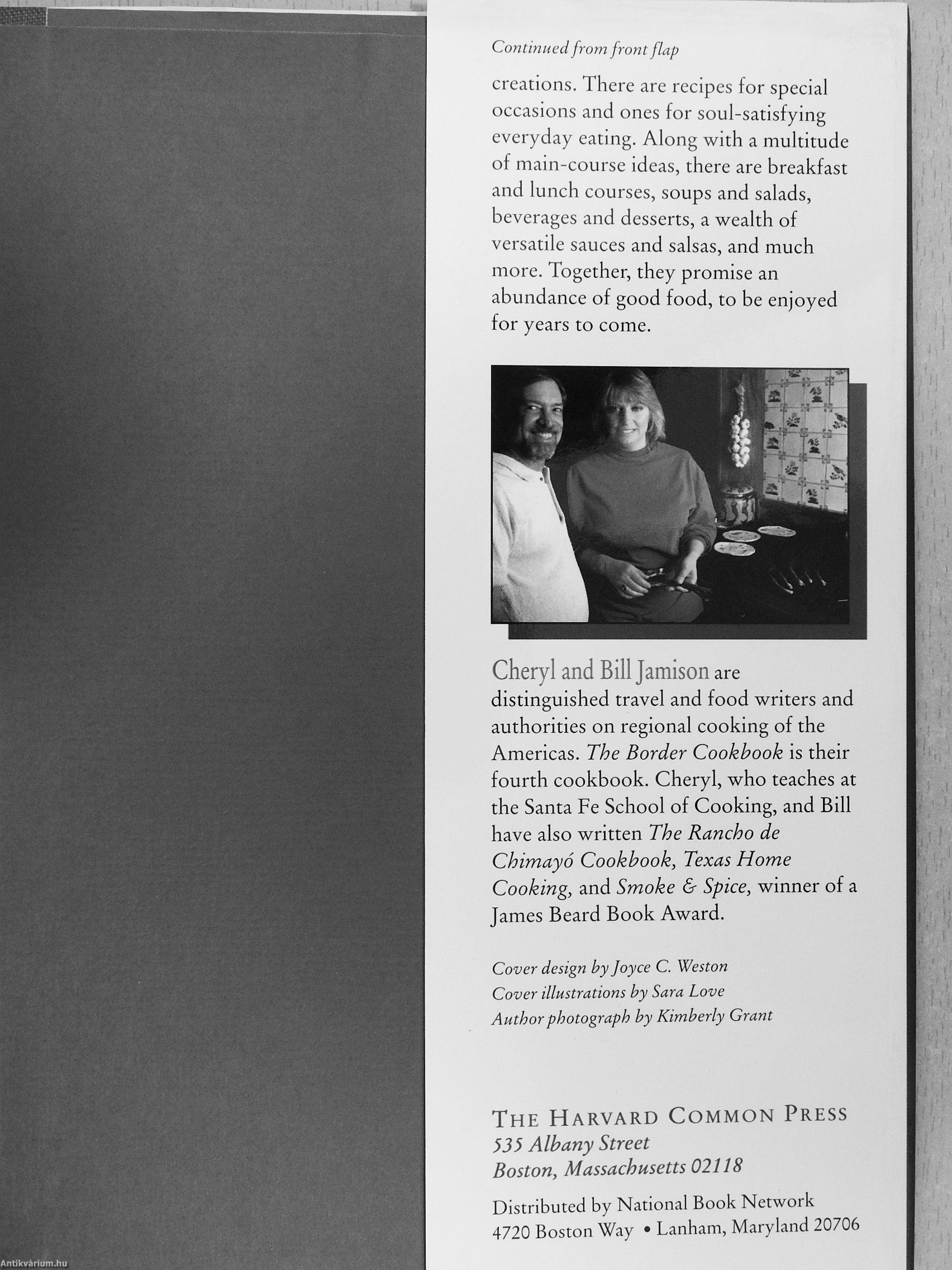 Cheryl and Bill Jamison are distinguished travel and food writers and authorities on regional cooking of the Americas. The Border Cookbook is their fourth cookbook. Cheryl, who teaches at the Santa Fe School of Cooking, and Bill have also written The Rancho de Chimayo Cookbook, Texas Home Cooking, and Smoke & Spice, winner of a James Beard Book Award.