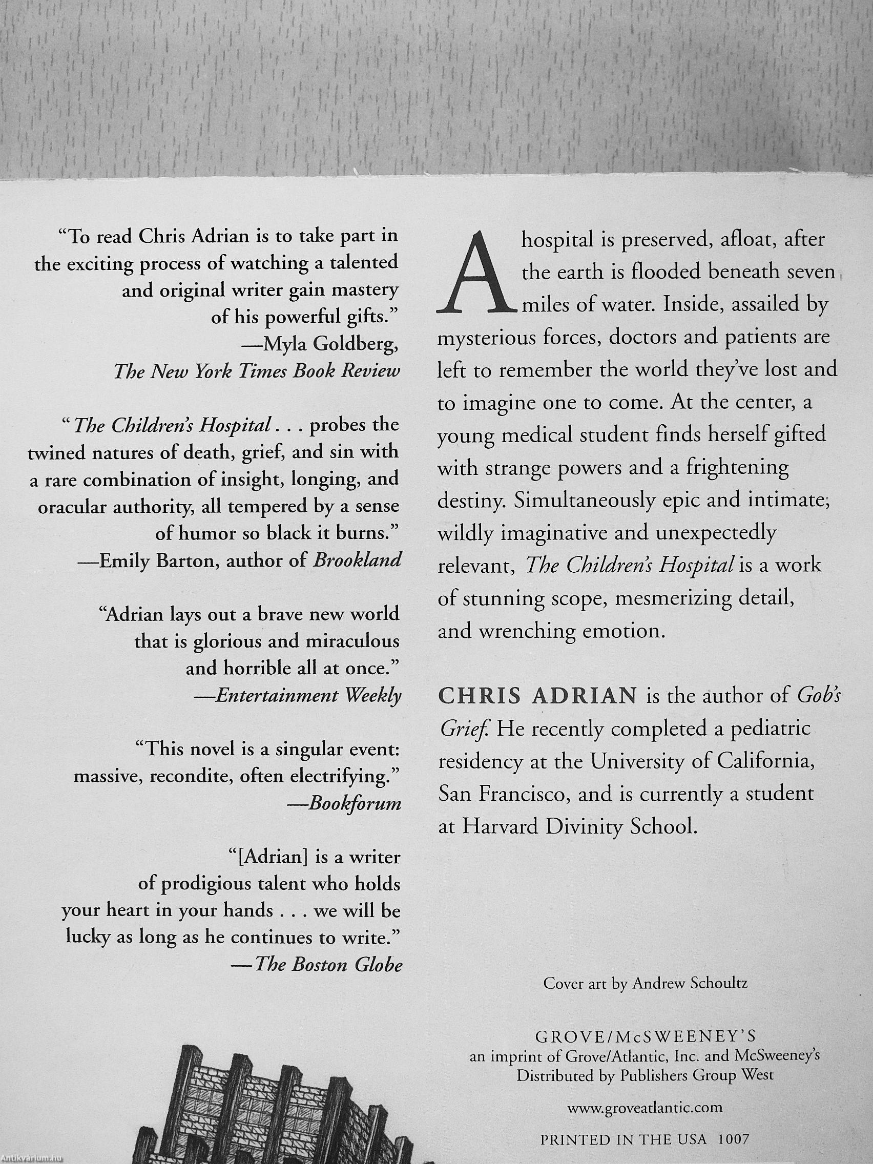 CHRIS ADRIAN is the author of Gob's Grief He recently completed a pediatric residency at the University of California, San Francisco, and is currently a student at Harvard Divinity School.
