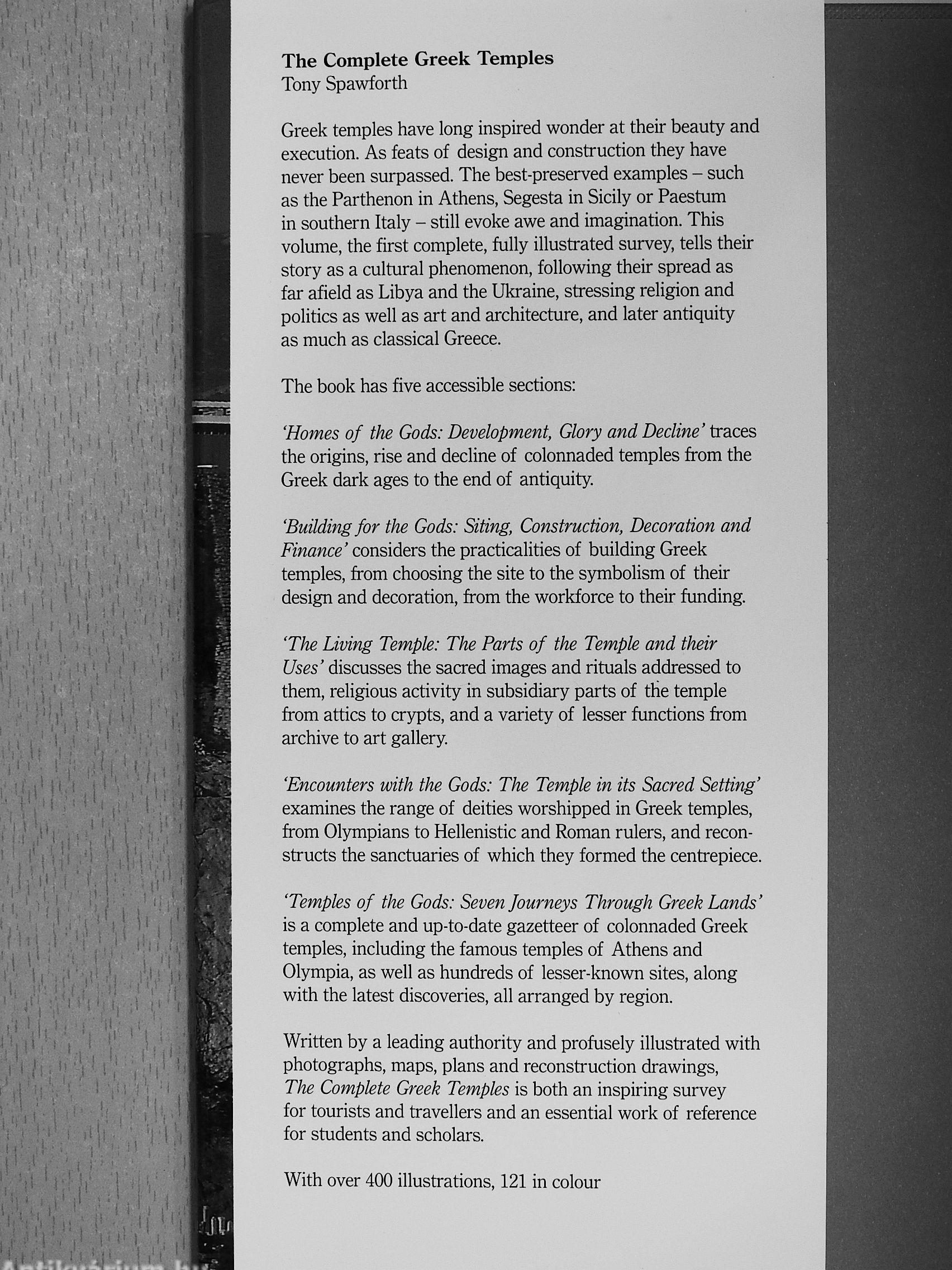 Includes the Parthenon, Paestum, Bassai and Didyma as well as hundreds of lesser-known Greek temples in the Mediterranean and Black Sea regions
