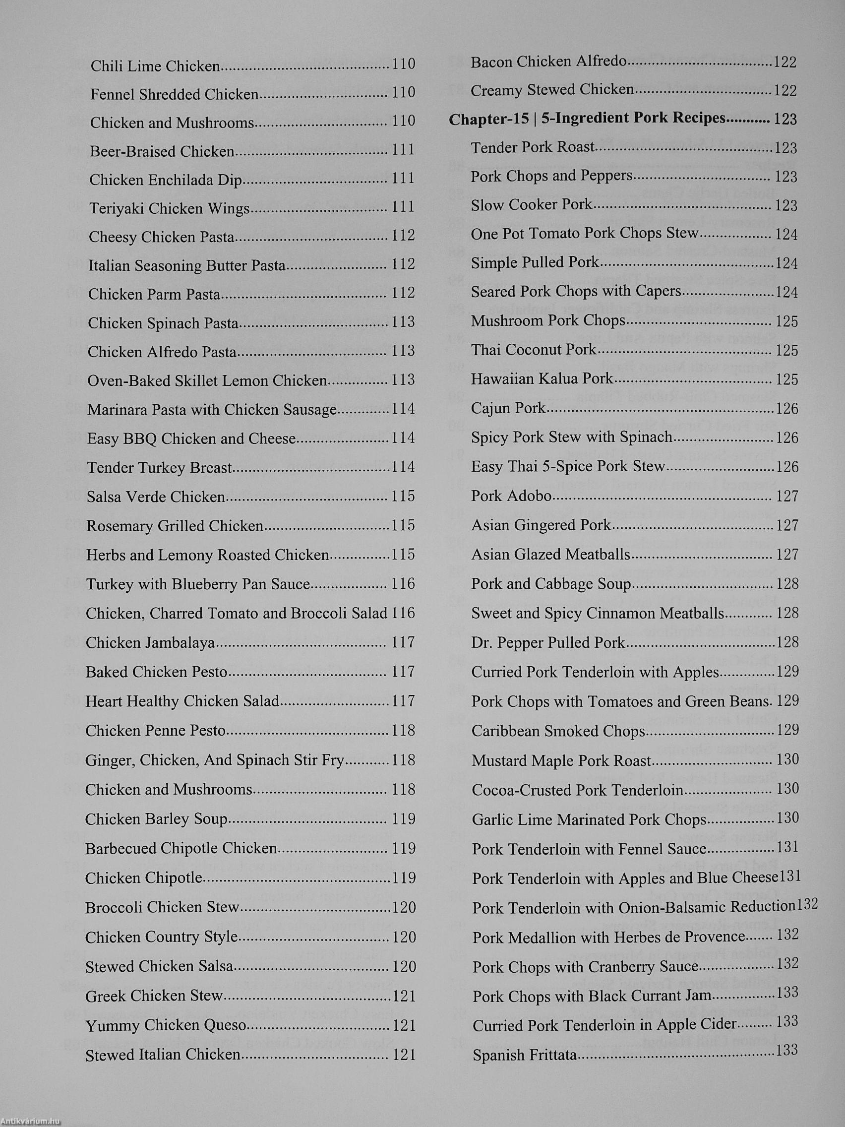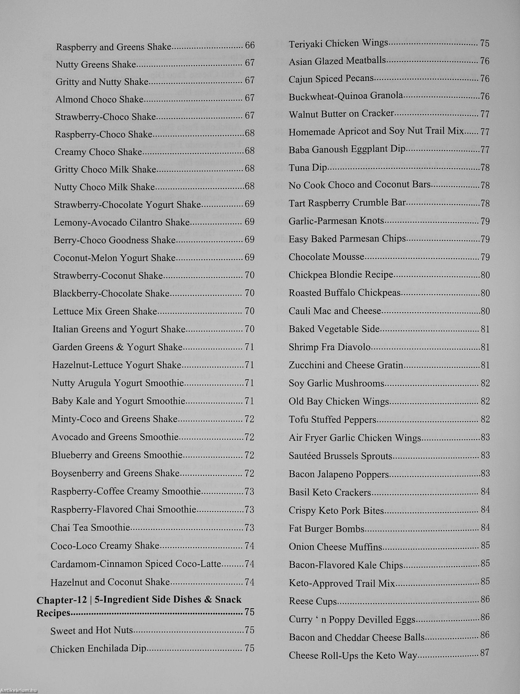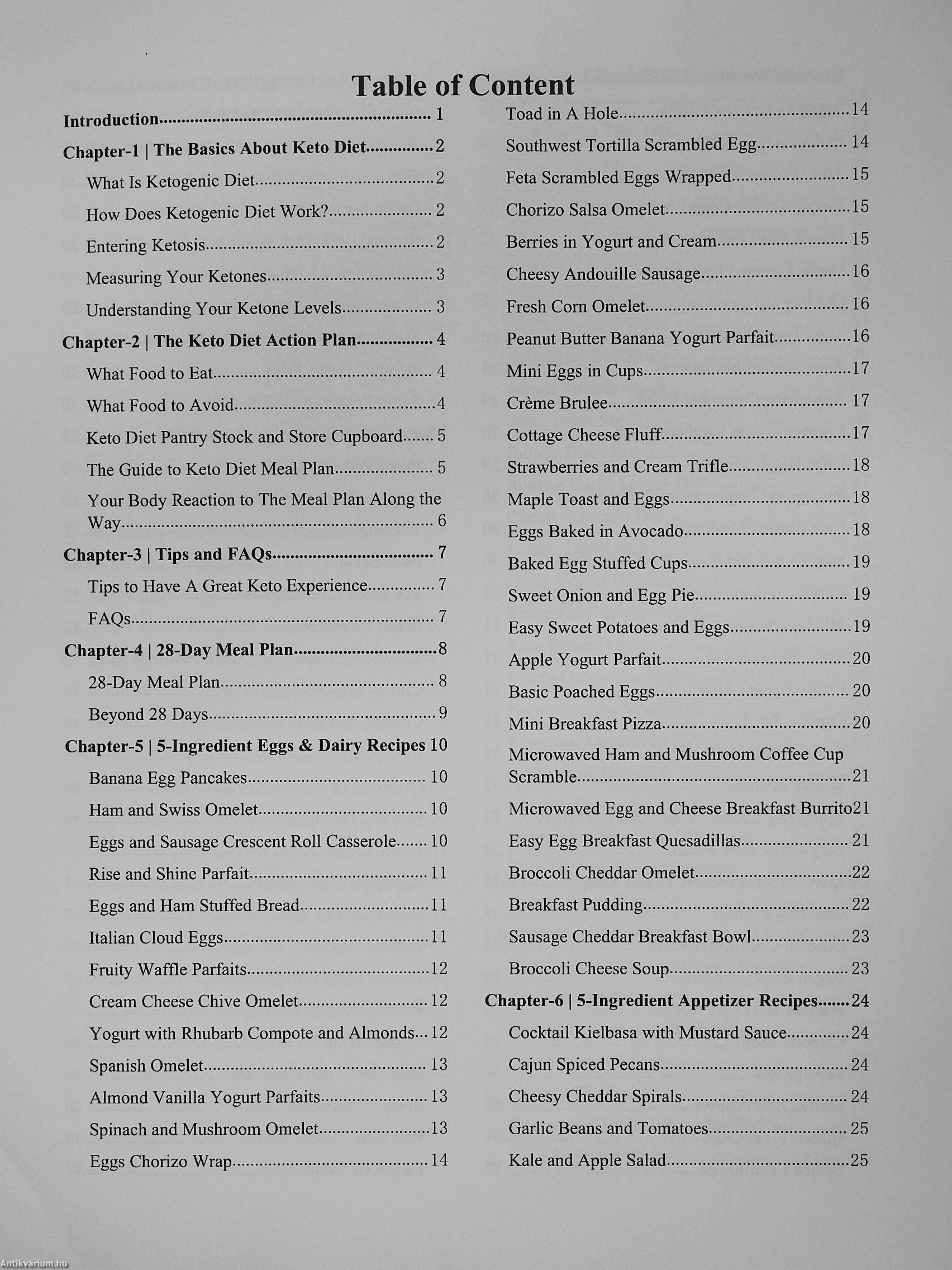 Eggs & Dairy recipes, Appetizer recipes, Vegan recipes. Salad, Vegetable recipes. Sauces and Dressing, Smoothies, Side dishes and Snack recipes. Fish & Seafood, Poultry Recipes, Pork recipes, Beef & Lamb, Desserts and Soup. This complete 5-ingredient recipe book will help you whip up delectable meals even with limited ingredients. The thing is that you don't need sophisticated ingredients to create delicious meals. All you need are few ingredients and creativity to create delicious meals almost worthy for an excellent dining experience.