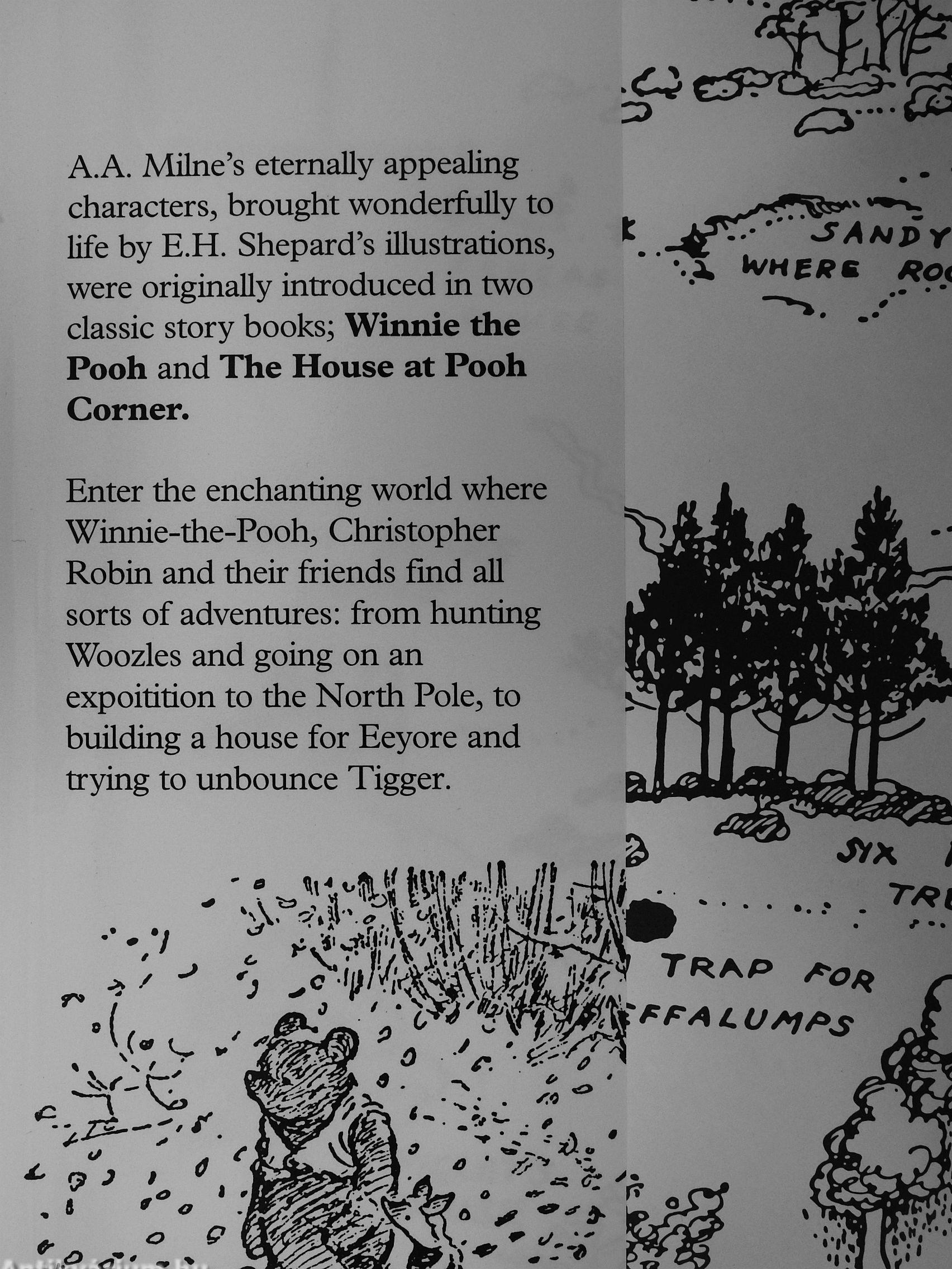 Enter the enchanting world where Winnie-the-Pooh, Christopher Robin and their friends find aU sorts of adventures: from hunting Woozles and going on an expoitition to the North Pole, to building a house for Eeyore and trying to unbounce Tigger.