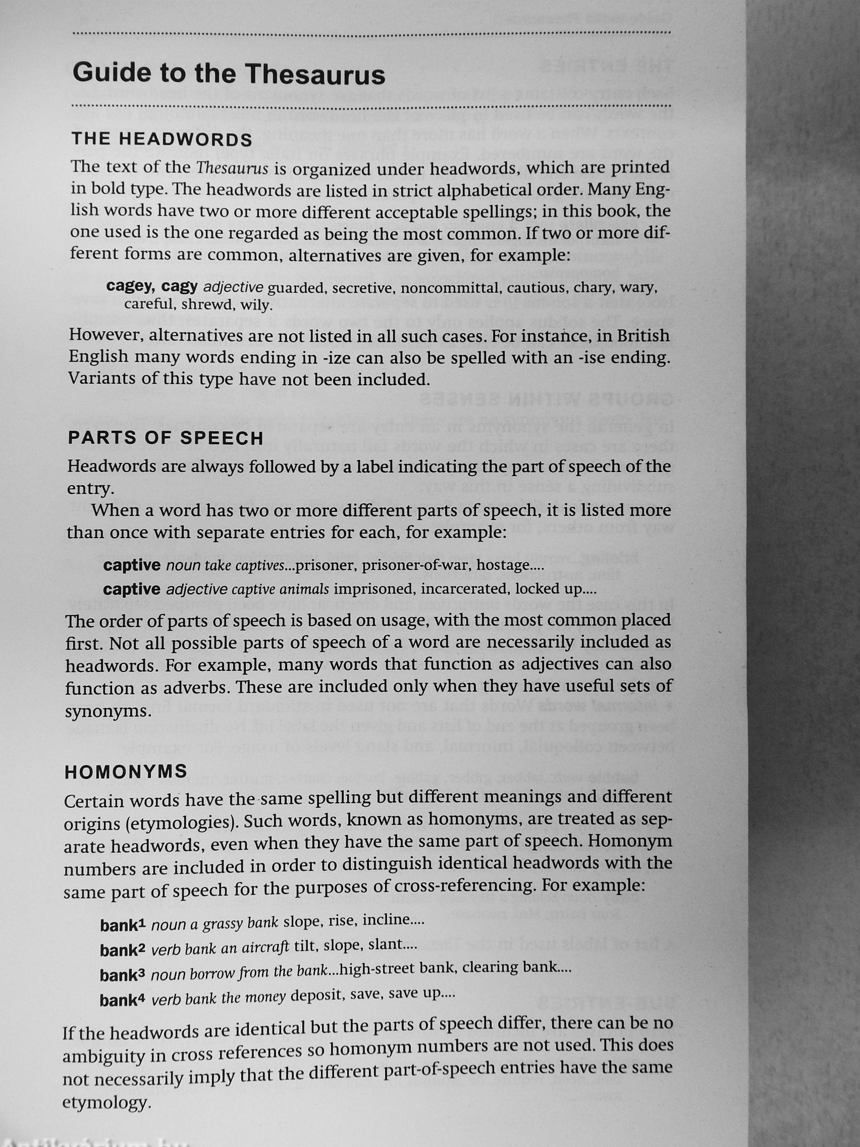 In many of the larger thesauruses, the commonest synonyms in today's English are listed first. In smaller thesauruses, an A-Z listing provides easy access to the information vou need.