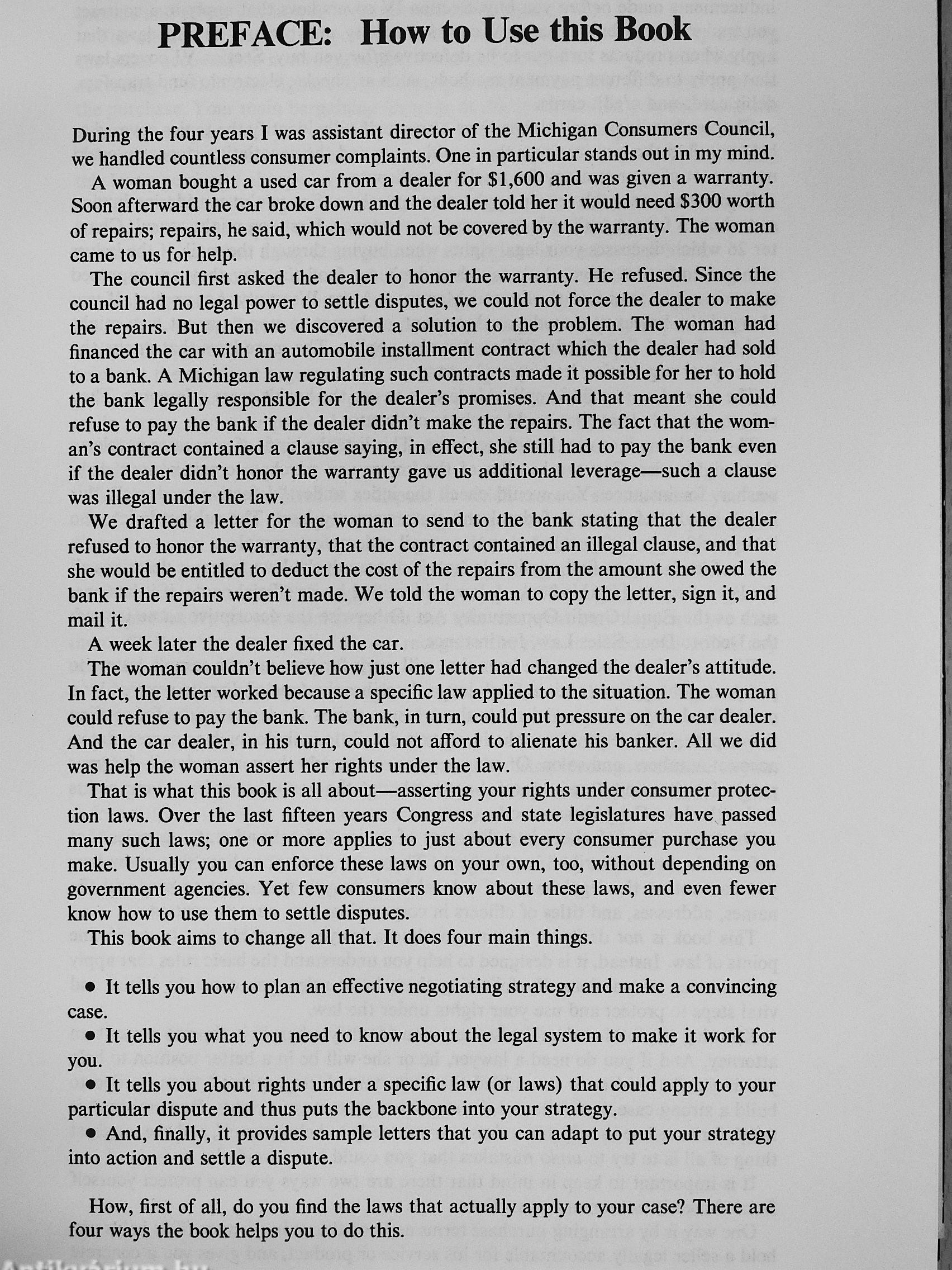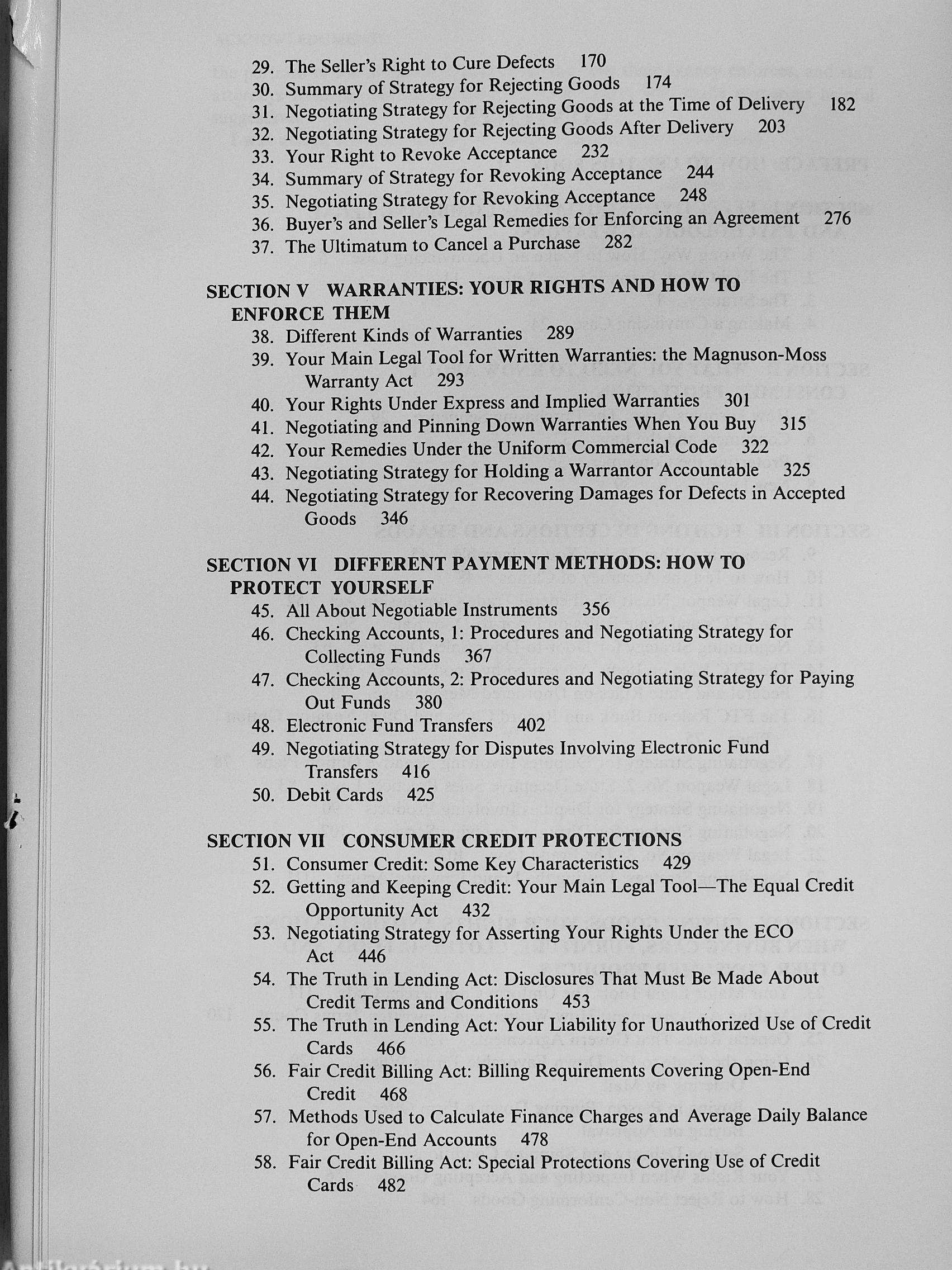 Every year consumers must make thousands of purchasing decisions. Armed with shopping lists and credit cards and facing myriad products, each claiming to be the best, buyers find it nearly impossible to know, or to spend the time finding out, which products are really the best for their needs. As a result, consumers sometimes get stuck with inferior merchandise. What recourse do they have? What protections are available to them under federal and state laws? How can they use these laws to protect themselves?
