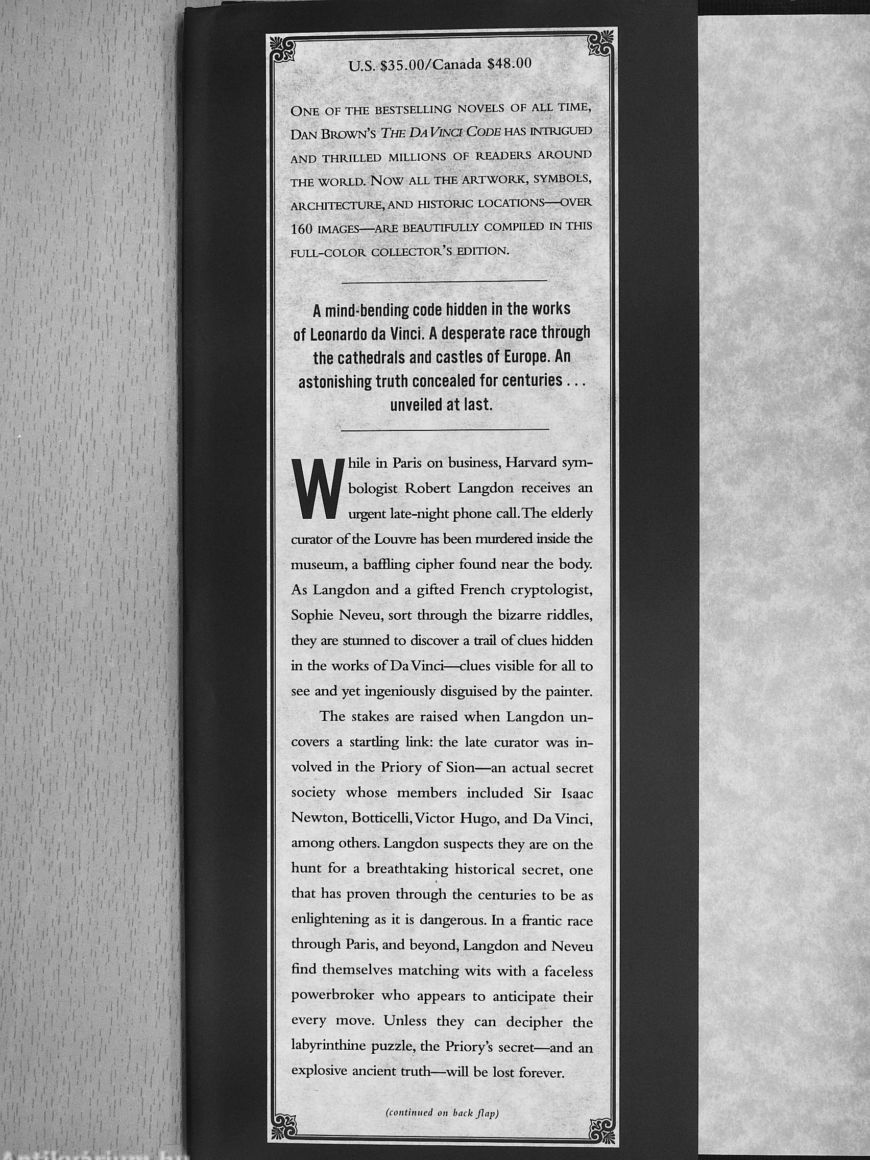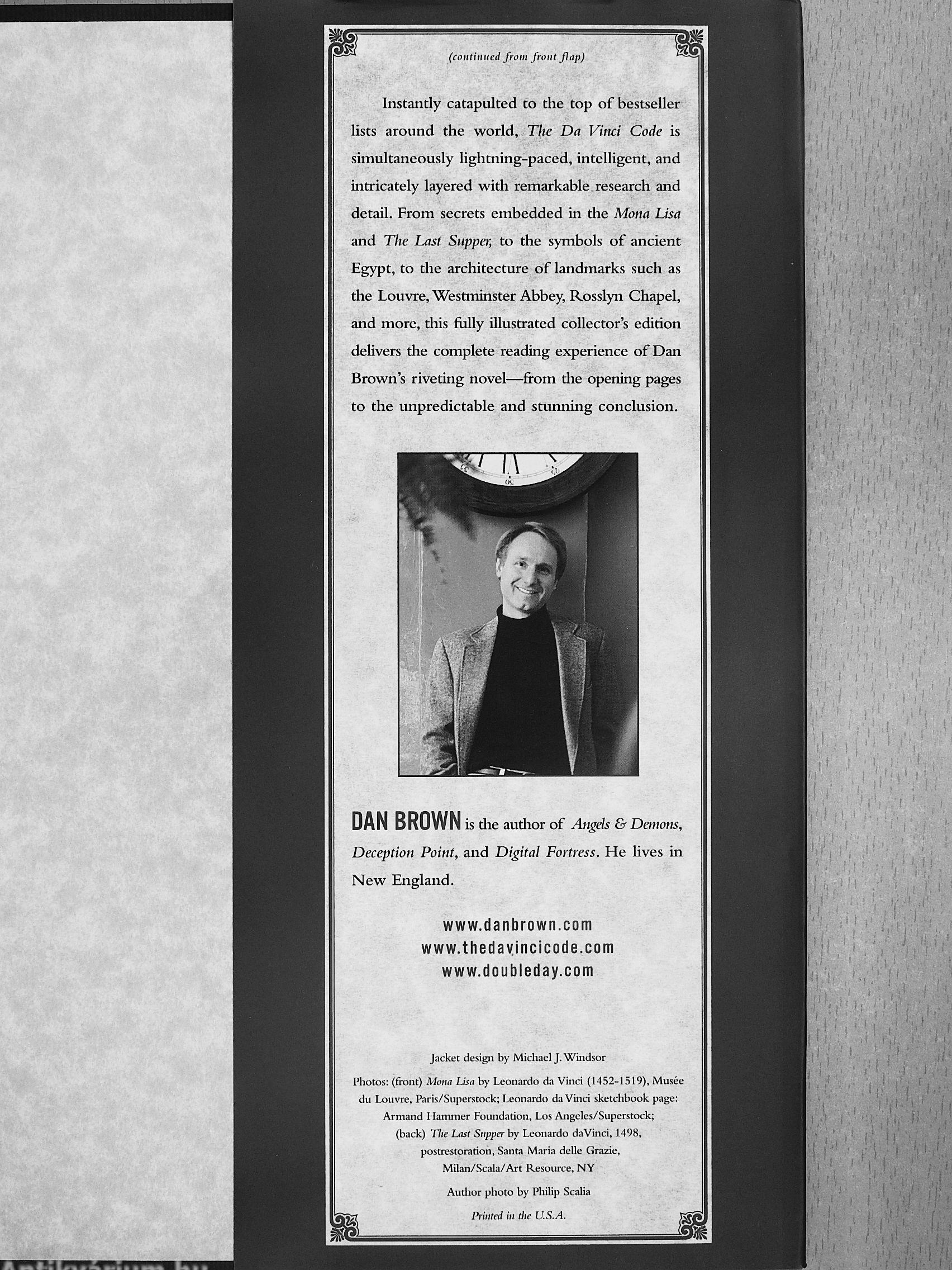 Instantly catapulted to the top of bestseller lists around the world. The Dn Vinci Code is simultaneously lightning-paced, intelligent, and intricately layered with remarkable research and detail. From secrets embedded in the Mono Lisa and The Last Supper, to the symbols of ancient Egypt, to the architecture of landmarks such as the Louvre, Westminster Abbey, Rosslyn Chapel, and more, tliis folly illustrated collector's edition delivers die complete reading experience of Dan Brown's riveting novel—from die opening pages to the unpredictable and stunning conclusion.