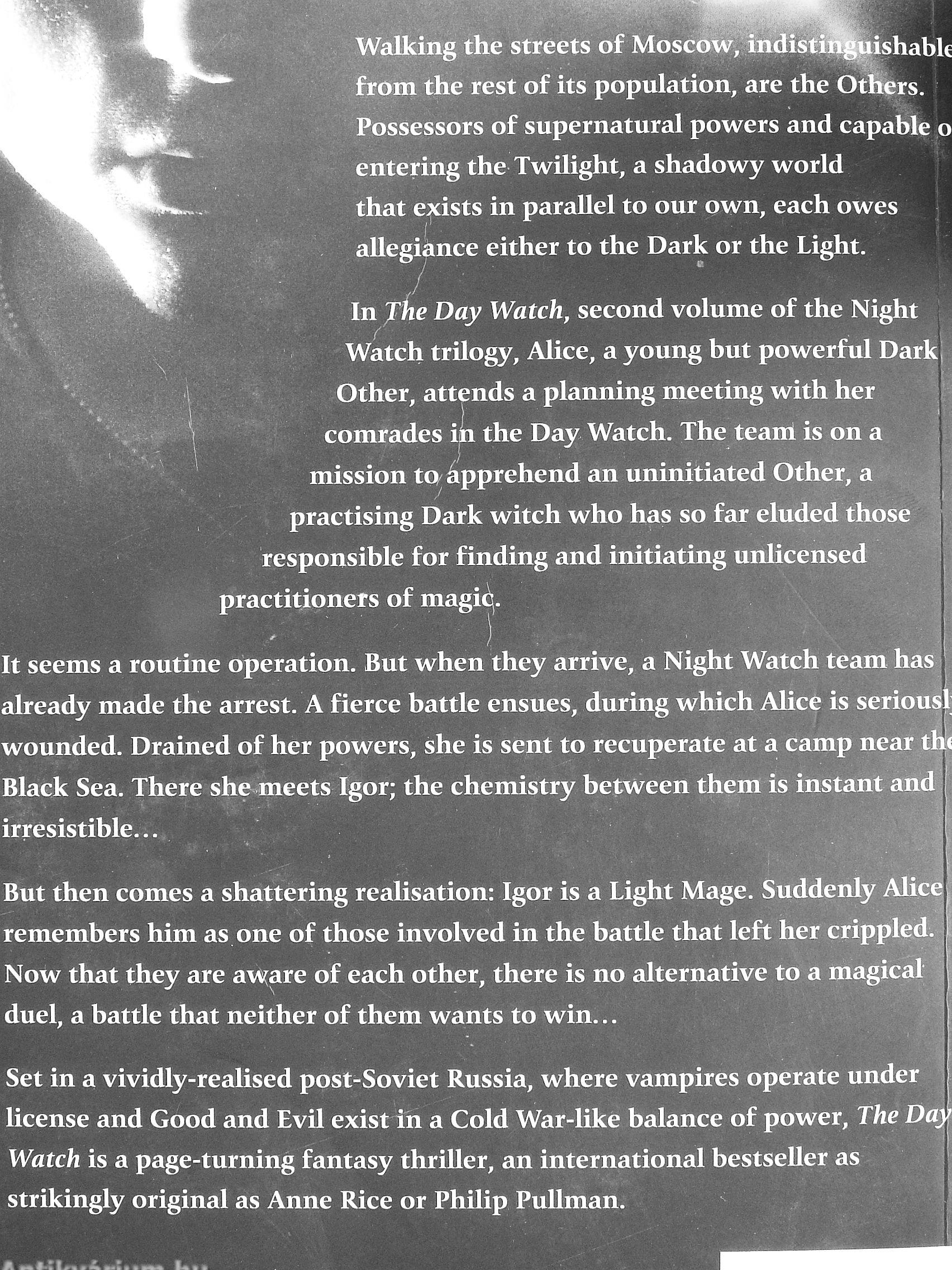 Set in a vividly-realised post-Soviet Russia, where vampires operate under license and Good and Evil exist in a Cold War-like balance of power. The Day Watch is a page-turning fantasy thriller, an international bestseller as strikingly original as Anne Rice or Philip Pullman.