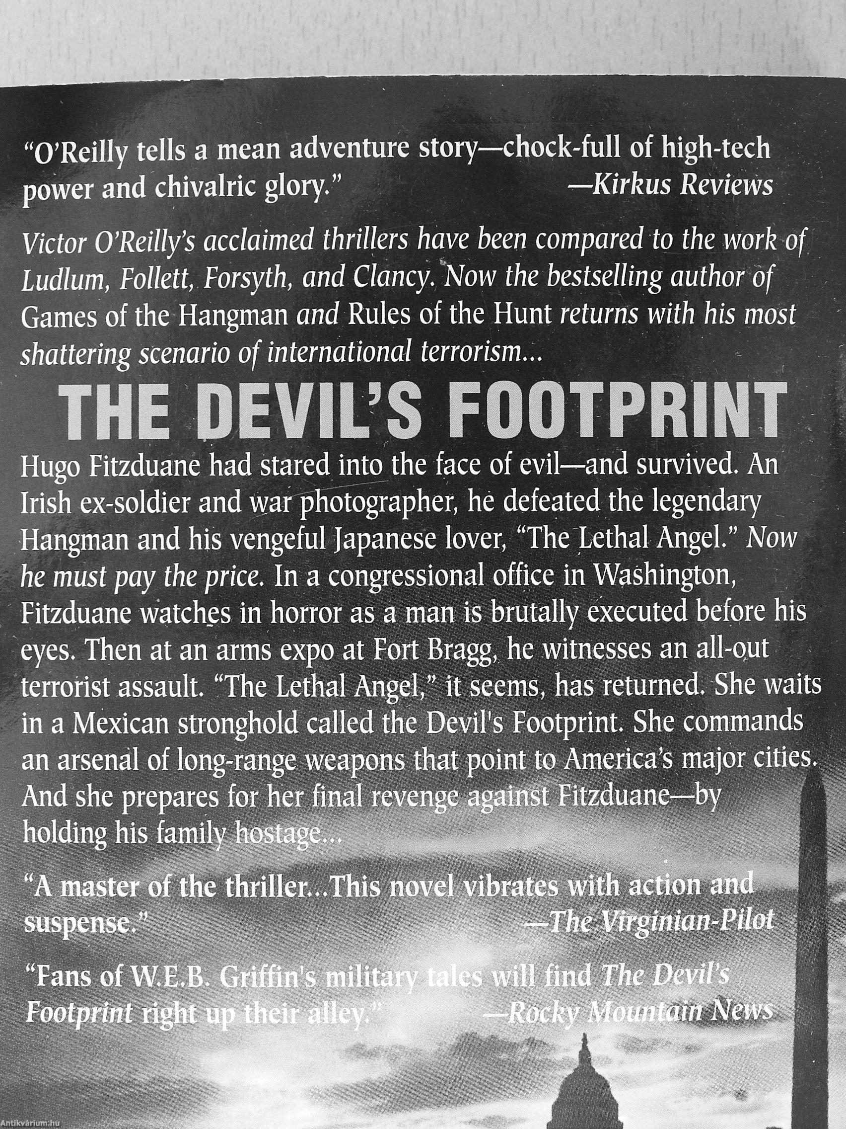 Hugo Fitzduane had stared into the face of evil—and survived. An Irish ex-soldier and war photographer, he defeated the legendary Hangman and his vengeful Japanese lover, "The kthal Angel." Now he must pay the price. In a congressional office in Washington, Fitzduane watches in horror as a man is brutally executed before his eyes. Then at an arms expo at Fort Bragg, he witnesses an all-Qut terrorist assault. "The Lethal Angel," it seems, has returned. She waits in a Mexican stronghold called the Devil's Footprint. She commands an arsenal of long-range weapons that point to America's major cities. And... Tovább