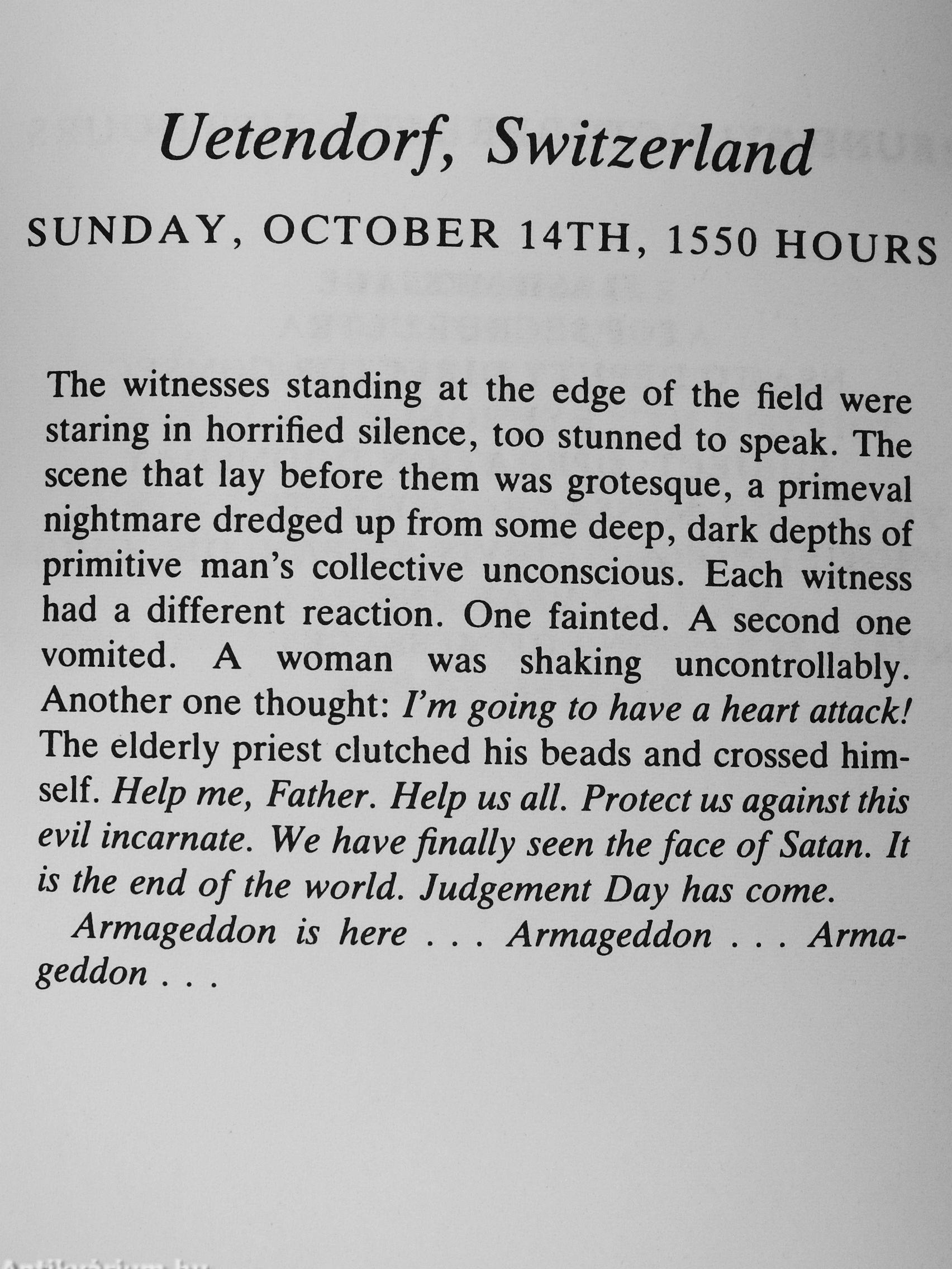 'The witnesses standing at the edge of the field were staring in horrified silence, too stunned to speak. The scene that lay before them was grotesque, a primeval nightmare '